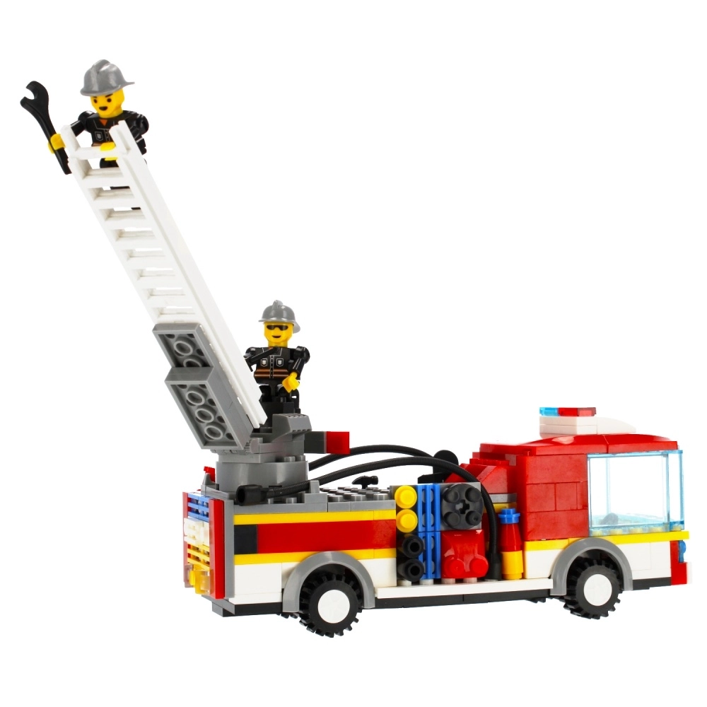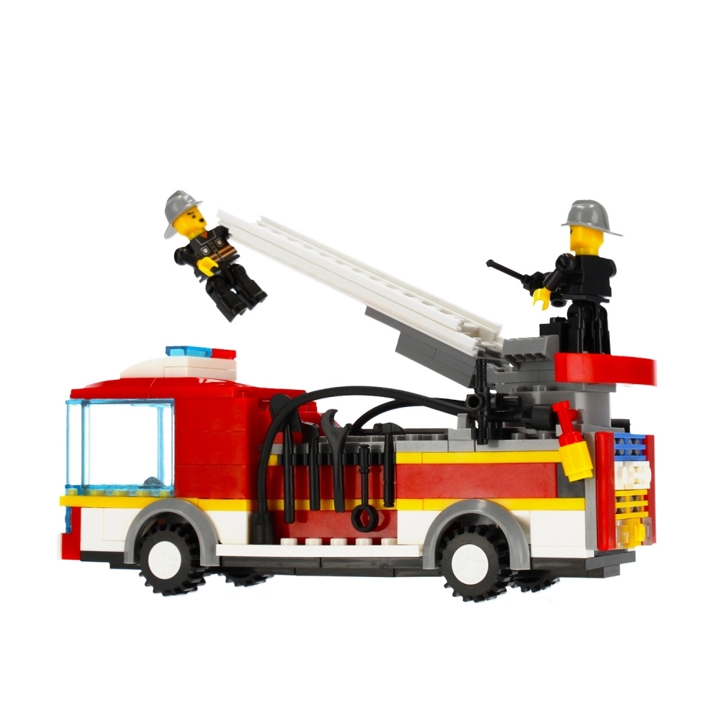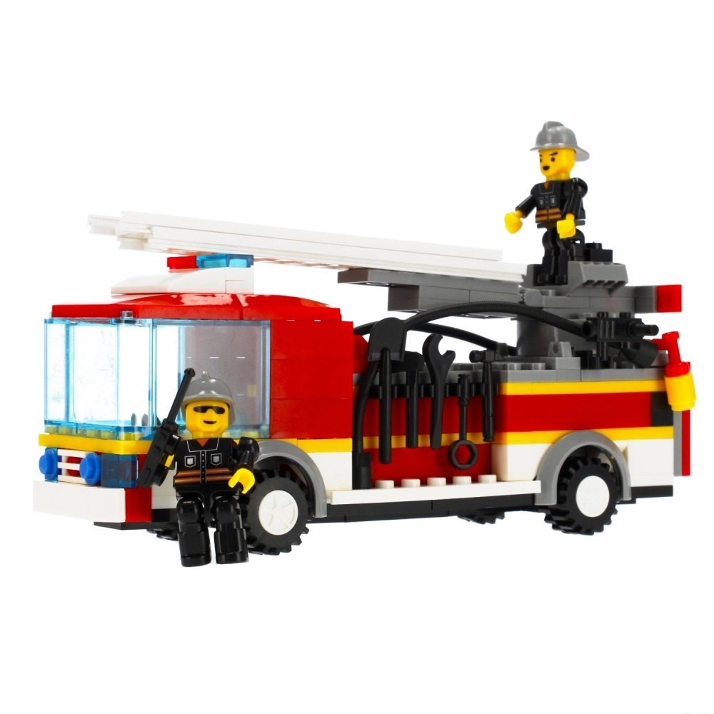 - Konstrukcijski komplet gasilskega vozila, 2 gasilski figurici, oprema, navodila za montažo