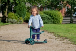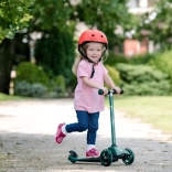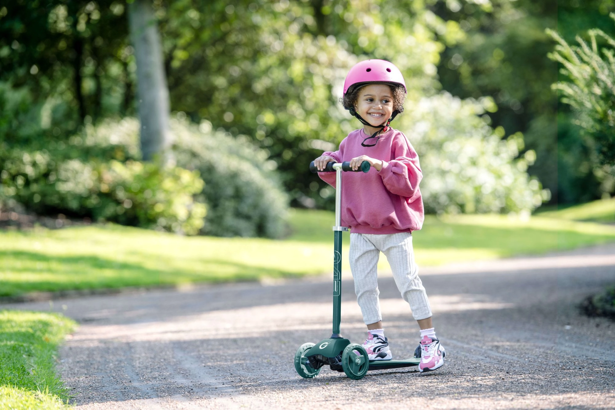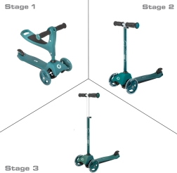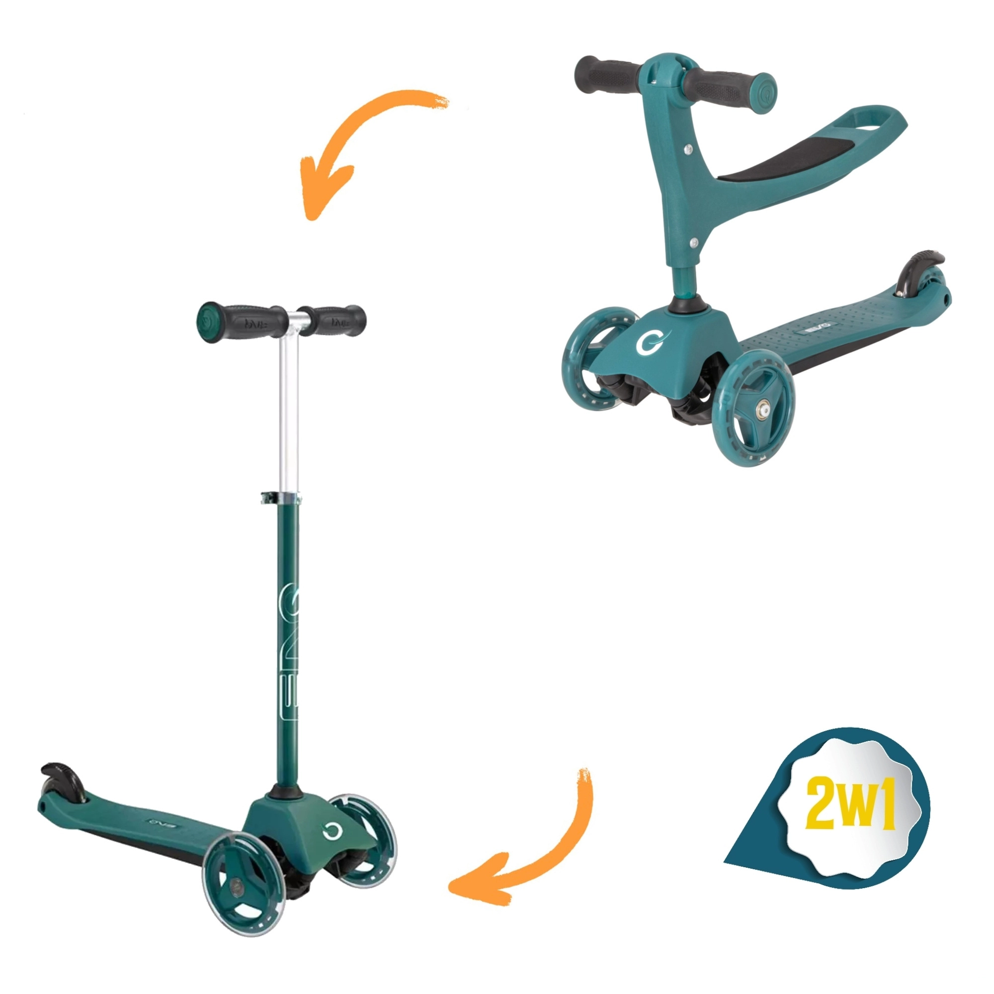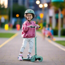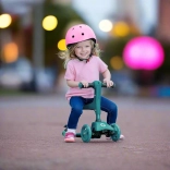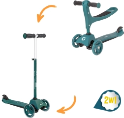 Ta pametni trikolinski skiro 2v1 se v hipu spremeni iz poganjalčka s sedežem v klasični skiro. Zahvaljujoč nastavljivemu krmilu (pribl. 40 cm v načinu poganjalčka in 62–72 cm v načinu skiroja) raste skupaj z otrokom ter nudi zanesljivost pri prvih vožnjah in kasneje pri hitrejšem odrivanju.
