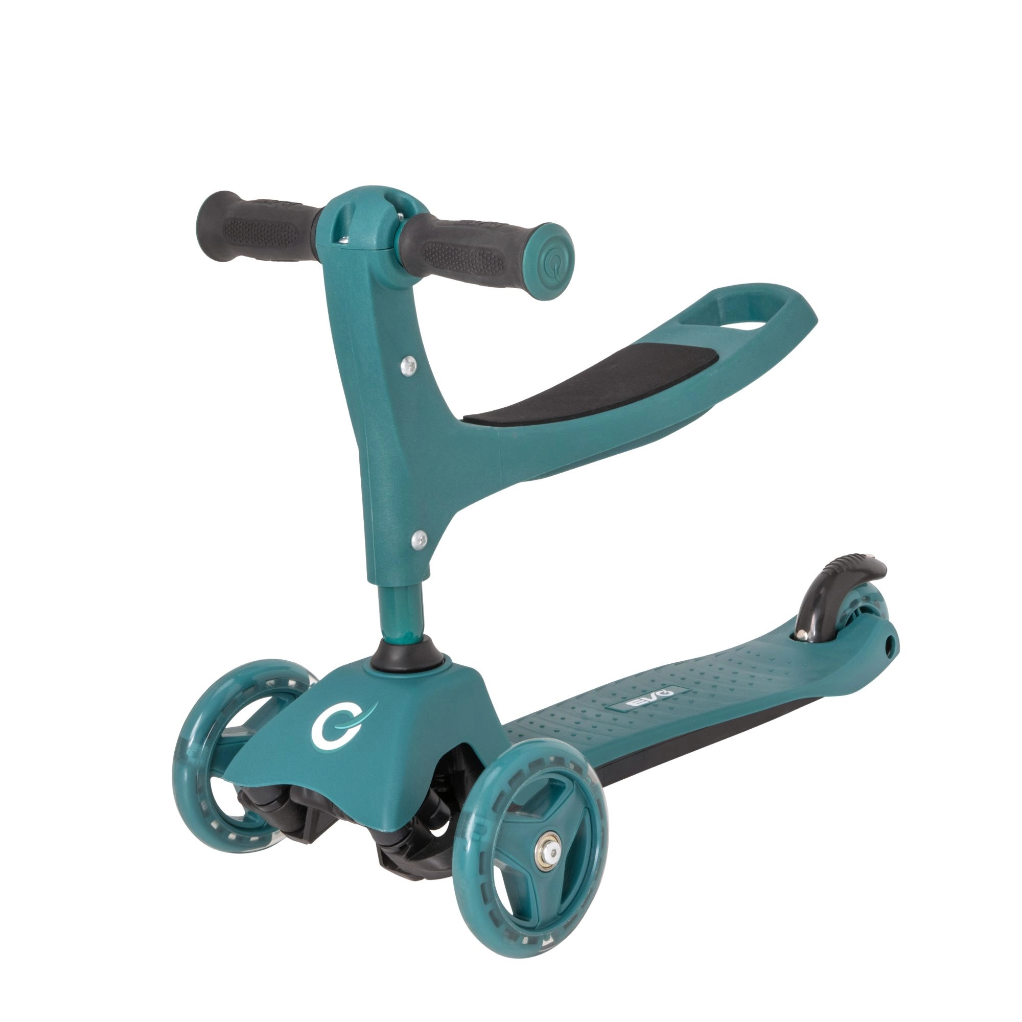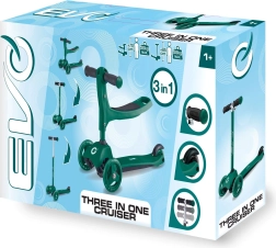 Privoščite otrokom stabilno in zabavno vožnjo s skirojem 2v1 znamke EVO – združuje poganjalček in skiro v enem. Zahvaljujoč trem kolesom, široki stopalki in nastavljivi višini krmila podpira ravnotežje in koordinacijo že od 1. leta dalje. Dvojni sprednji kolesi, tiha ležaja ABEC-5 in nožna zavora na zadnjem blatniku zagotavljajo varno in gladko vožnjo.