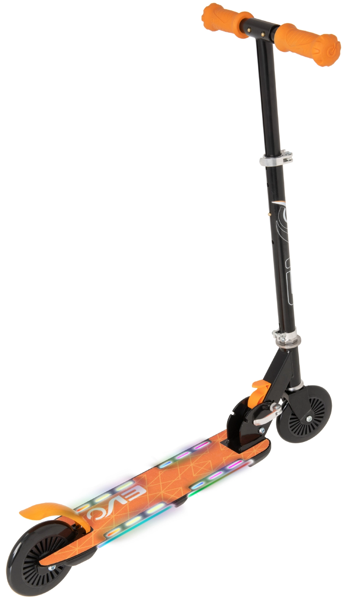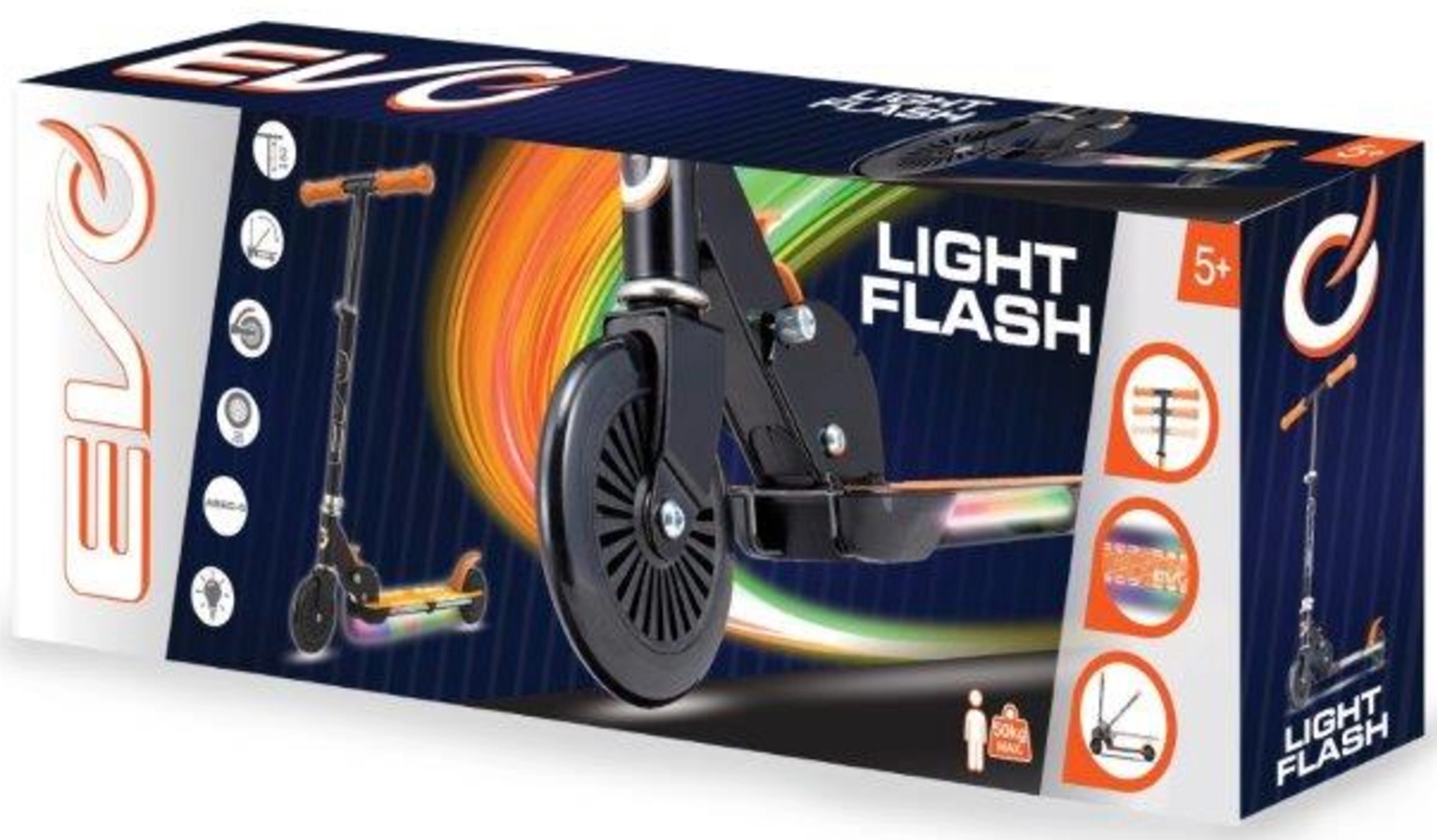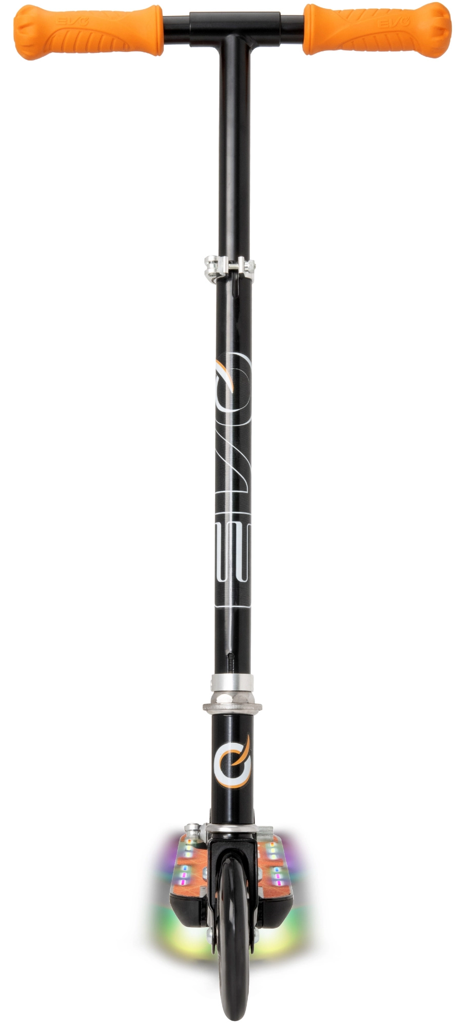 Skiro EVO Light Flash je odlična izbira za mlade voznike, ki želijo stil, varnost in zabavo. Podest z barvno LED osvetlitvijo poveča vidnost in doda vožnji privlačen učinek, medtem ko lahka zložljiva zasnova olajša shranjevanje in prevoz. Nastavljiva višina krmila (pribl. 72–82 cm) zagotavlja idealno ergonomijo za različne višine otrok.