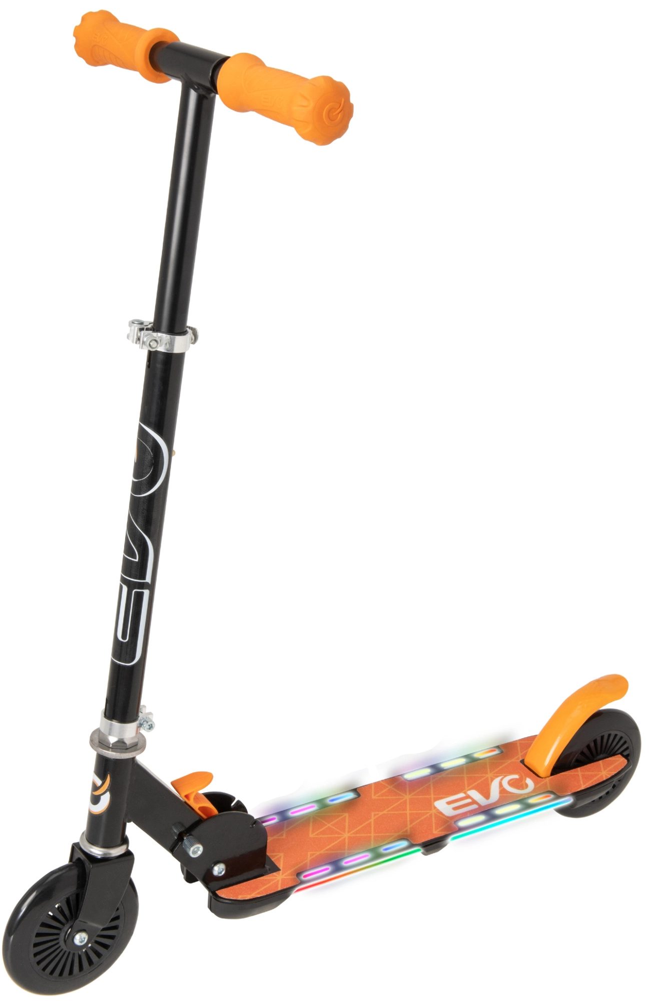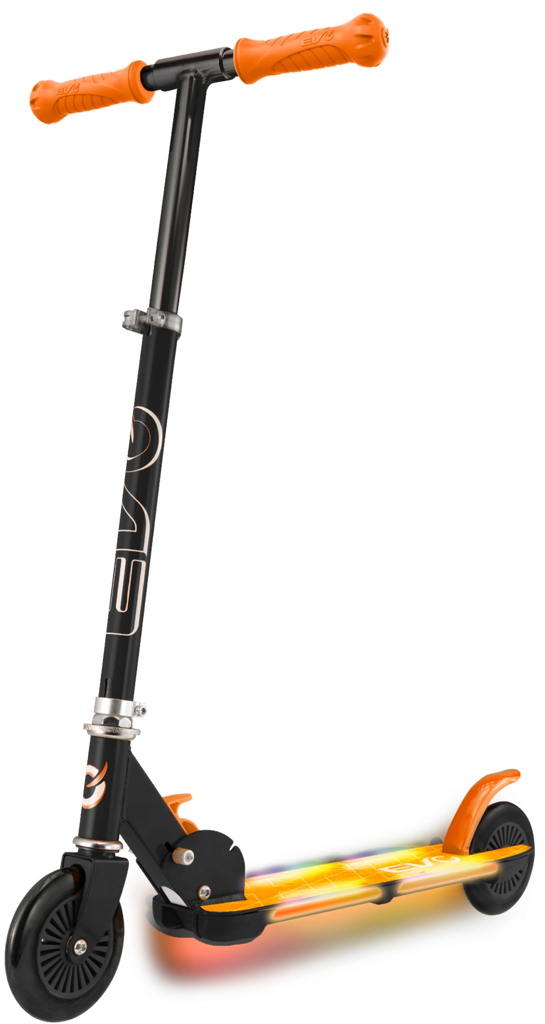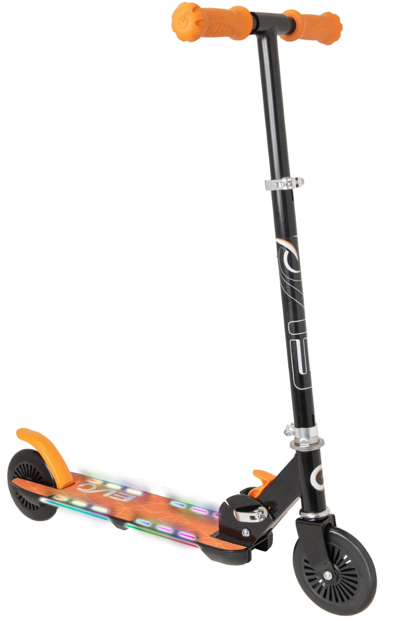 Skiro EVO Light Flash je odlična izbira za mlade voznike, ki želijo stil, varnost in zabavo. Podest z barvno LED osvetlitvijo poveča vidnost in doda vožnji privlačen učinek, medtem ko lahka zložljiva zasnova olajša shranjevanje in prevoz. Nastavljiva višina krmila (pribl. 72–82 cm) zagotavlja idealno ergonomijo za različne višine otrok.