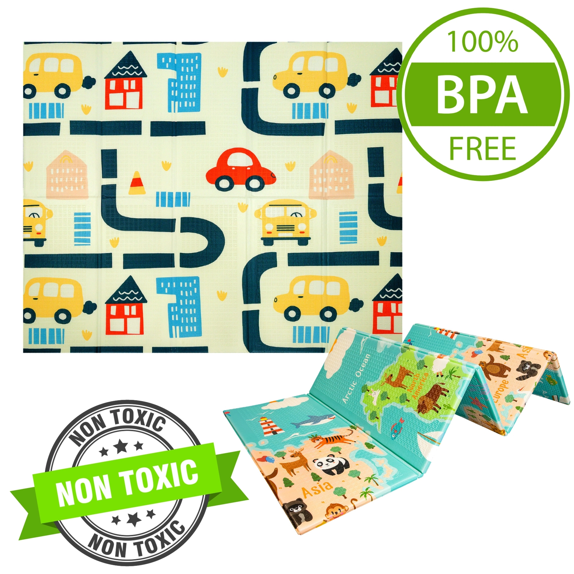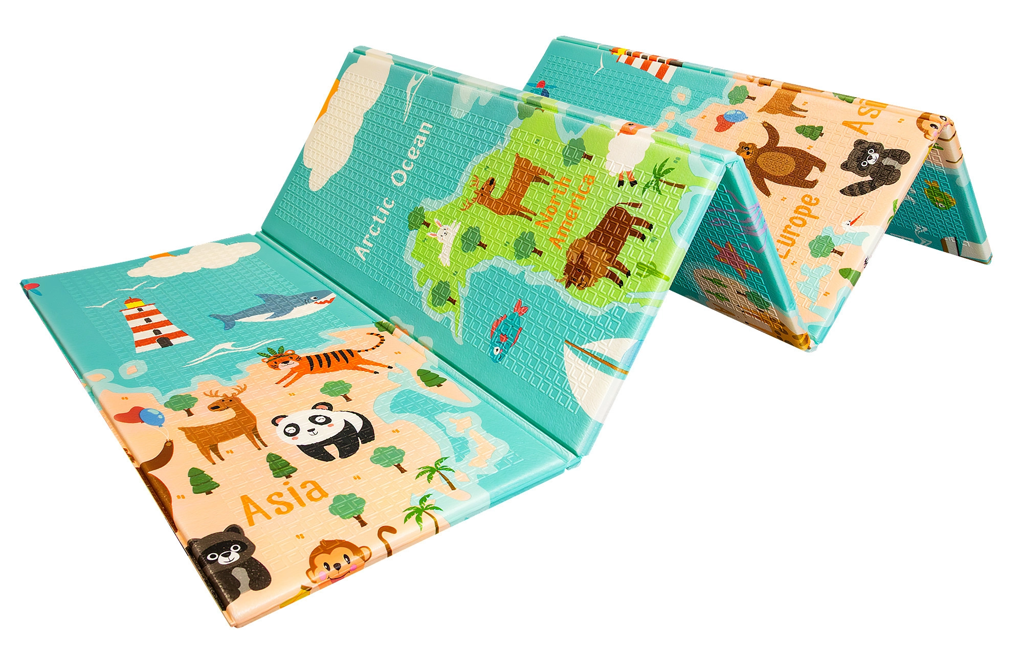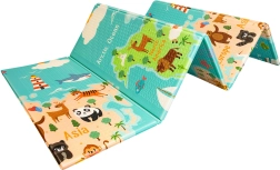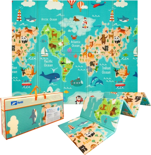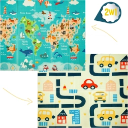 Odkrijte prostorno in mehko igralno podlogo HUMBI iz kakovostne pene XPE z merami 200 × 180 × 1 cm. Je dvostranska – ena stran z barvnim zemljevidom sveta, druga z mestnimi uličicami – in ponuja varen, vodoodporen in enostavno čistljiv površino za dojenčke in otroke od rojstva dalje. Zahvaljujoč zložljivi zasnovi in praktični torbi v paketu je odlična za otroško sobo, dnevni prostor ali vrt. Brez škodljivin, certifikati CE, EN71 in REACH za maksimalen mir staršev.