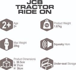 Slogovni otroški poganjalec v barvah JCB prinaša odlično kombinacijo zabave in razvoja veščin. Otroci se poganjajo z nogami, zlahka zavijajo s pomočjo volanskega kolesa in uživajo v realističnem dizajnu, navdihnjenem z gradbeno mehanizacijo.