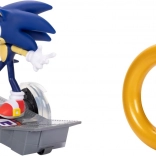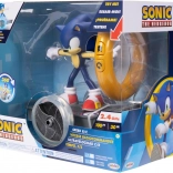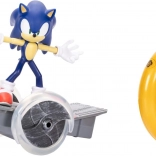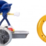 Odkrijte hitrost in stil z junakom SONIC. V setu najdete približno 15 cm odstranljivo figurico na futurističnem vozilu z dvema velikima prozornima kolesoma. Upravljanje poteka z ikoničnim zlatim prstanom, ki aktivira pogon in svetlobne učinke koles.