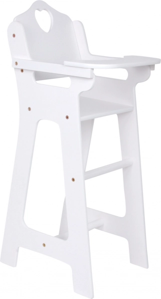 Ta beli leseni stolček za punčke znamke Small Foot je idealen dodatek za otroško sobo. Ponuja trdno konstrukcijo, gladke linije in dekorativni izrez v obliki srčka, ki razveseli vsakega malega skrbnika za punčke. Zaradi svoje višine je primeren k običajni jedilni mizi, zato lahko punčke »jedo« skupaj z družino.