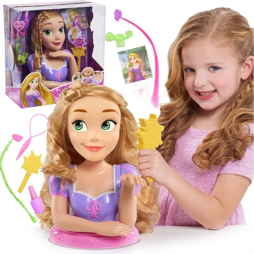 Ta razkošna glava za oblikovanje Rapunzel prinaša otrokom vse, kar potrebujejo za ustvarjanje čarobnih pričesk. Zahvaljujoč dolgim blond lasem je mogoče zlahka česati, valoviti, plesti in kombinirati različne okraske. Stabilno stojalo drži glavo trdno na mizi, zato se lahko otroci osredotočijo na ustvarjalno igro.