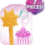 V kompletu najdete sončno krtačo, dekorativni glavniček in elastike za ustvarjanje pričesk za vsak dan ali za kraljevski ples. Igra s styling glavo podpira razvoj kreativnosti, koordinacijo oko–roka in trenira potrpežljivost pri ustvarjanju kit in valov.