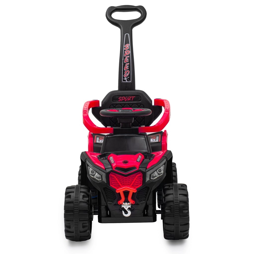 Električni poganjalec Ruggy združuje sodoben dizajn, stabilno konstrukcijo in enostavno upravljanje za prve vozne izkušnje otrok. Po pritisku na plin se mali voznik odpravi na avanturo, starši pa lahko zahvaljujoč visoki vodilni palici varno pomagajo.