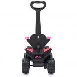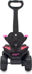 Električni poganjalec Baby Mix Ruggy je odlična izbira za male dirkače, ki želijo več kot običajen poganjalec. Dovolj je, da sedejo, pritisnejo pedal in tihi motor 18 W poskrbi za gladek zagon. Robustna konstrukcija in široka kolesa, ki spominjajo na off-road štirikolesnik, zagotavljajo stabilnost in zanesljivost na različnih podlagah.