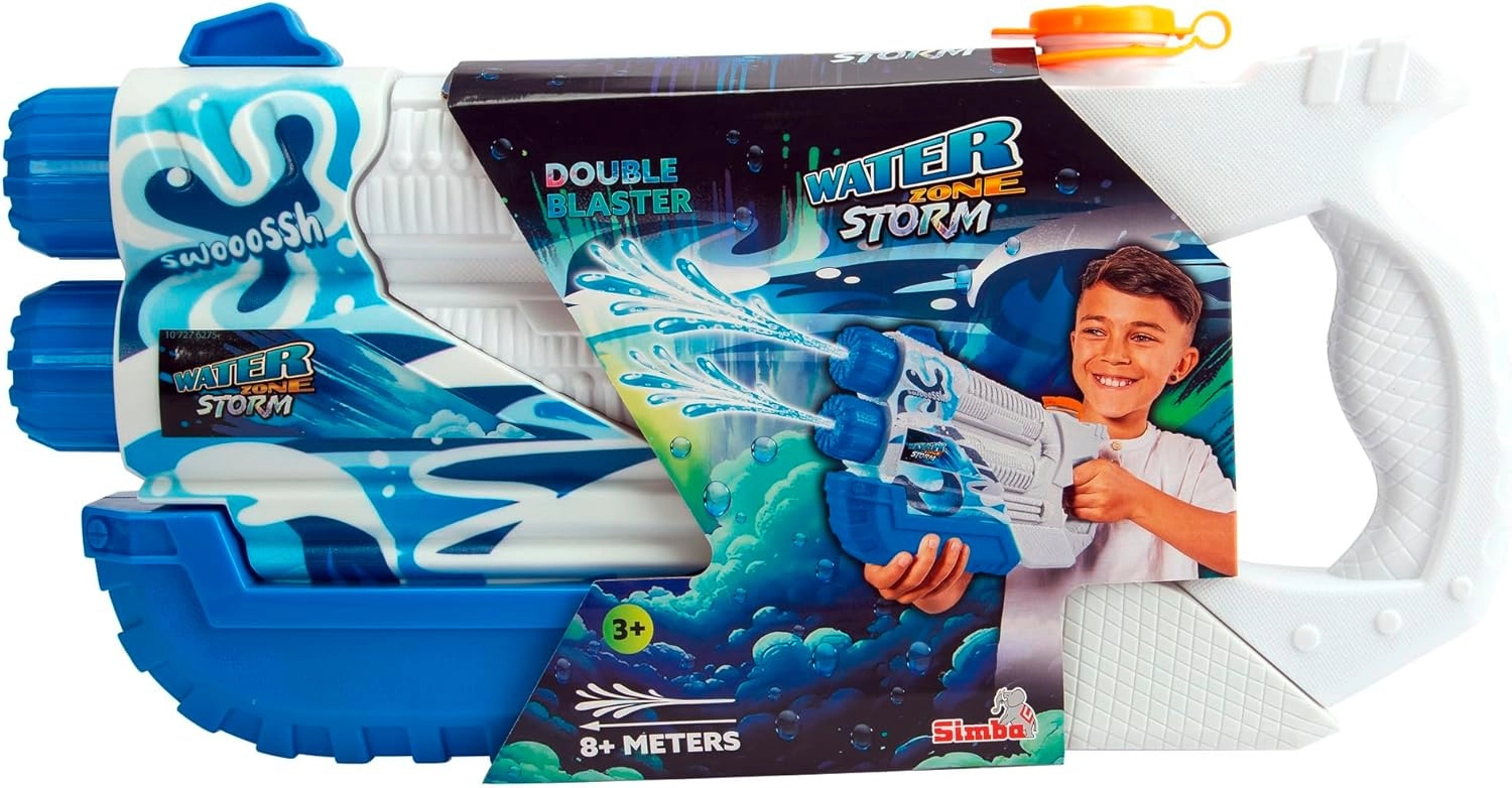 Vodna pištola SIMBA Waterzone Storm Double Blaster prinaša dinamično zabavo na prostem za male in velike. Zahvaljujoč dvojnemu nastavku (Double Jet) izstrelite dva močna curka vode hkrati, kar poveča natančnost in učinkovitost vsakega zadetka. Robustna plastična izdelava in udoben oprijem olajšata uporabo tudi otrokom.