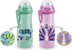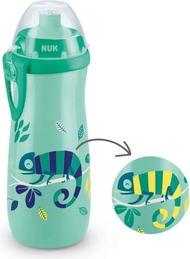 Lahka in trpežna otroška steklenička NUK Sports Cup Chameleon s prostornino 450 ml je idealna za aktivne otroke od 3 let. Ponuja mehak push-pull ustnik iz silikona za udobno pitje, higienski pokrovček za čistočo ustnika in trdno izvedbo brez BPA. Zahvaljujoč širokemu grlu FIRST CHOICE se zlahka polni in čisti, praktičen sponka-clip za pripenjanje pa omogoča, da je steklenička vedno pri roki.
