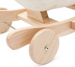 Plišasto telo, oblazinjen sedež in leseni ročaji zagotavljajo udobje in varnejši oprijem tudi za najmlajše jezdece.