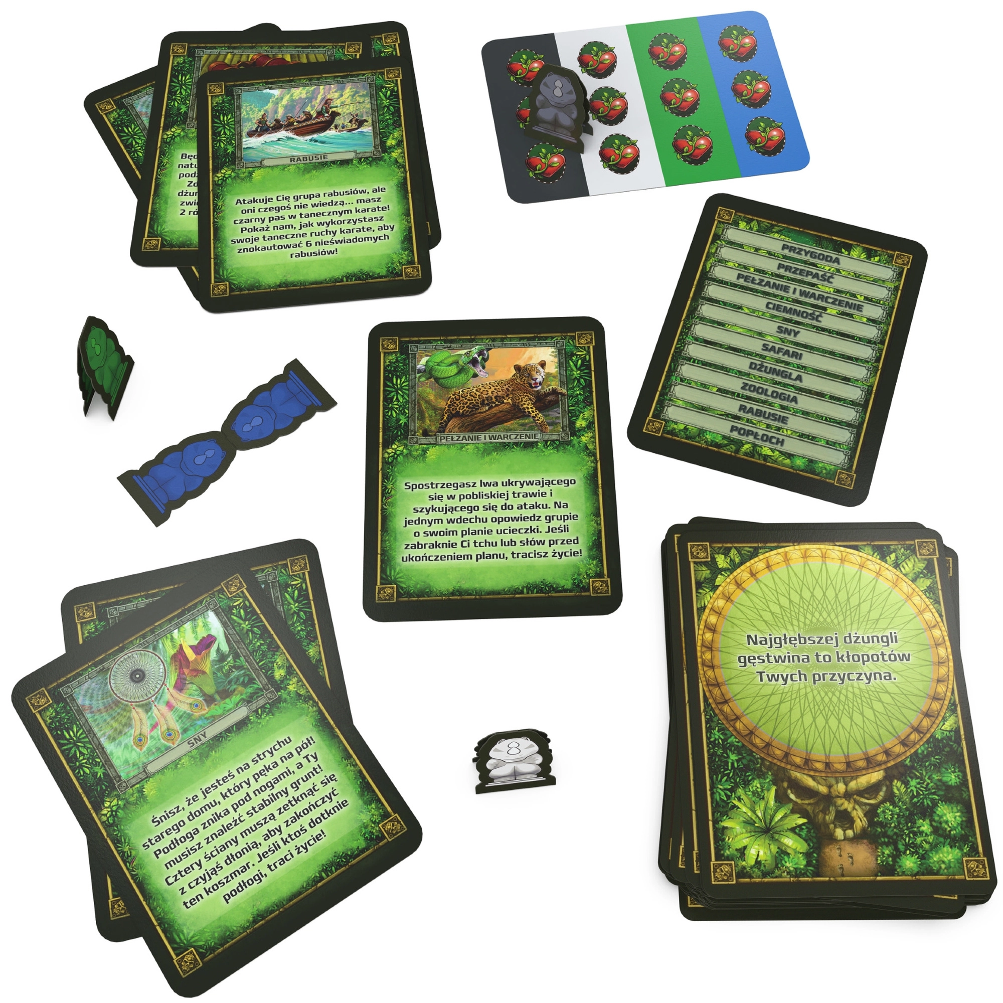 Družinska kartna igra JUMANJI prinaša napetost in pustolovščino v vsak večer. Izberite lik, obrnite karto in se podajte v nepričakovane preizkušnje džungle. Velike karte z motivi divjih živali in vzdušjem legendarne igre bodo pritegnile vašo pozornost od prve do zadnje minute.