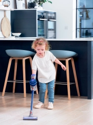 Modro-siv otroški pokončni sesalnik CASDON DYSON otrokom nudi avtentično izkušnjo pospravljanja. Ima nežno sesanje za lahke drobtine in konfete, ki je varno tudi za najmlajše uporabnike. Cenili boste tišje delovanje, prijazno do otroškega sluha, ter realistične zvoke, ki posnemajo pravi sesalnik.
