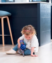 Zvoki kot pri pravem sesalniku motivirajo k igri, hkrati pa je naprava občutno tišja in prijazna do otroškega sluha.