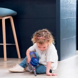 Nežen sesalni učinek varno pobere lahke drobtine, konfete ali kroglice. Otroci lahko resnično “pospravljajo” in posnemajo starše.