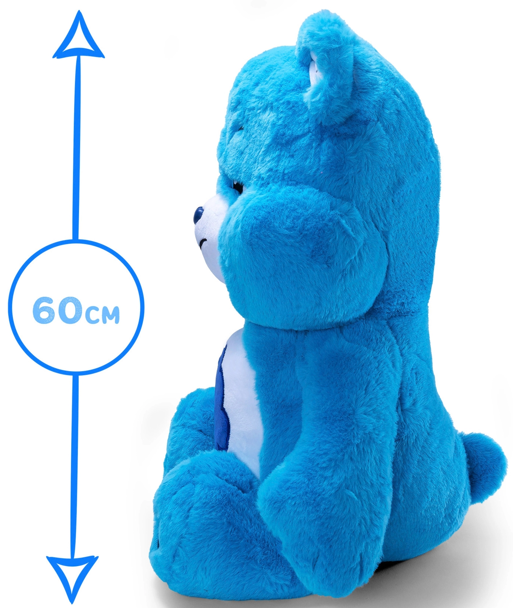 Predstavljamo velikega plišastega prijatelja iz pravljičnega sveta CARE BEARS – modrega medvedka Grumpy Bear. Ta nežen in bogato polnjen pliško je popoln za vsakodnevno crkljanje in polepšanje otroške sobe. Zahvaljujoč izvezenemu obrazu in ikoničnemu simbolu oblačka s kapljicami in srčkom deluje ljubko in avtentično.
