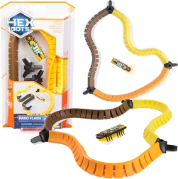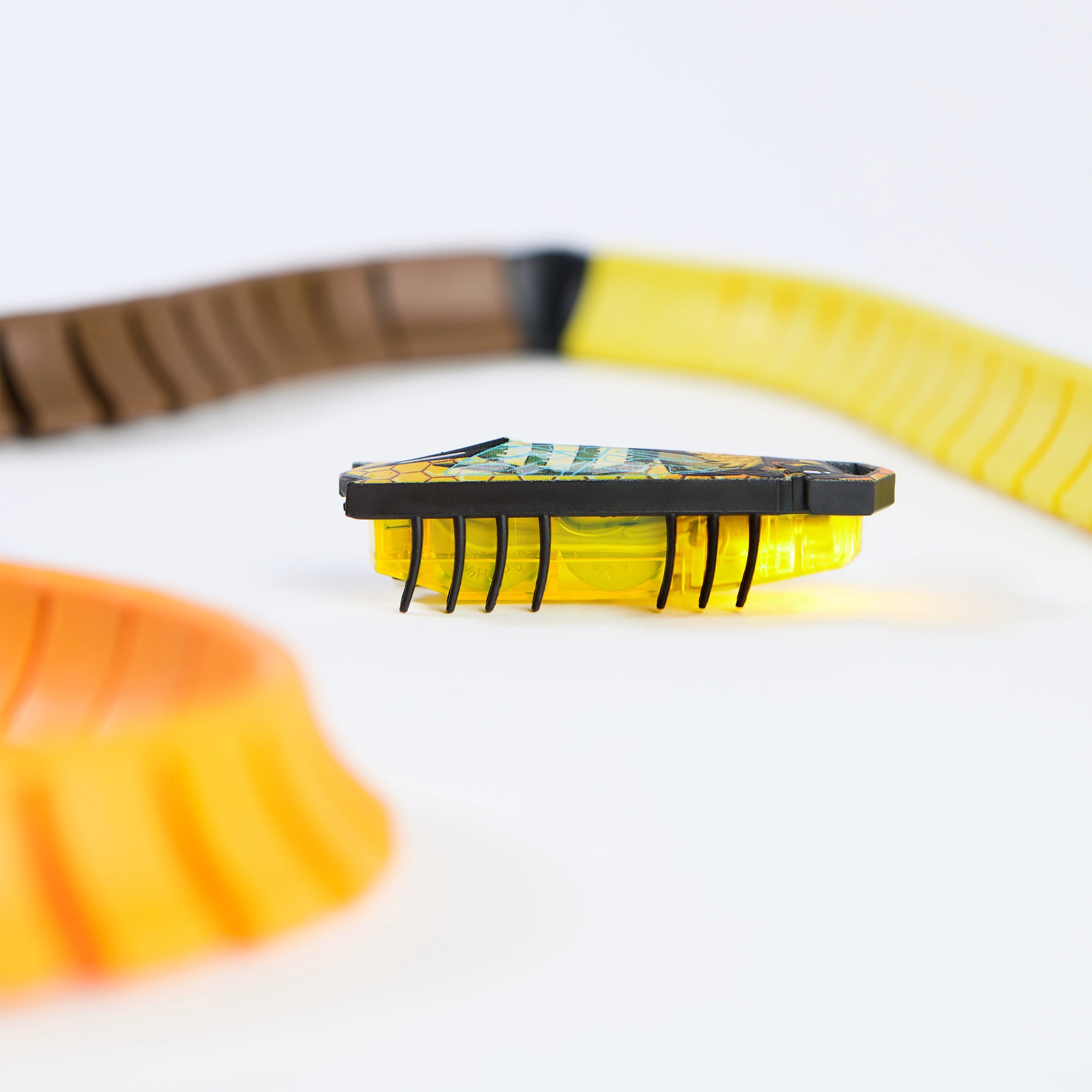 Začetni set HEXBUG NANO FLASH prinaša živahno akcijo v žepni velikosti. Prosojno rumeno telesce hroščka zasveti, številne prožne nožice ga poženejo v vse smeri, vi pa opazujete, kako se hrošč nagonsko prebija po progi. Prilagodljive stenske vodilne dele preprosto vkliknete v konektorje in v hipu ustvarite nove poti in oblike – od lokov do vijugastih koridorjev.