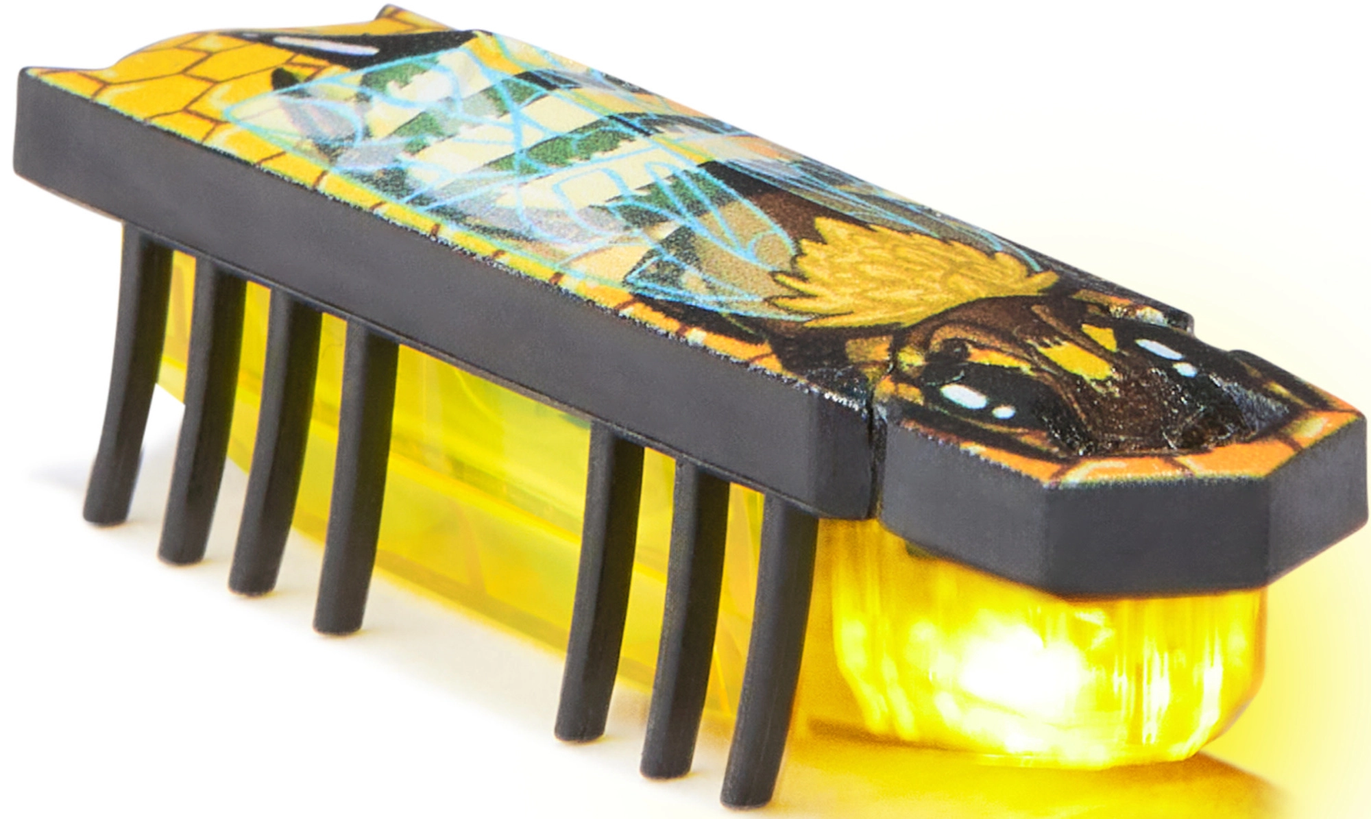 Mikrorobot s prosojnim rumenim telesom sveti in se zaradi vibracij urno »sprehaja« po progi in po ravni površini. Zabavni svetlobni učinki vabijo k igri.