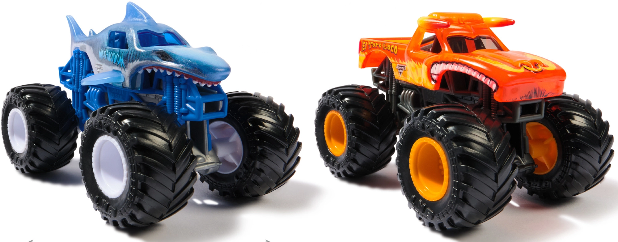 - 2 tovornjaka 1:64 v paketu: pripravljeno za dirkanje takoj po sestavi.