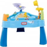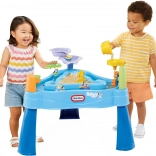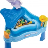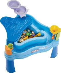 Miza LITTLE TIKES BLUEY prinaša bogato opremljeno vodno in peščeno igrišče neposredno na vaš vrt, teraso ali balkon. Zunanji prstan ustvarja zabavno »počasno reko« za nalivanje, zajemanje in škropljenje, medtem ko je notranja trikotna komora idealna za pesek ali dodatno vodo. Dva kaskadna bazenčka, prelivno vedro in lijak z vrtečimi kolesi razvijajo čute in naravno radovednost otrok.