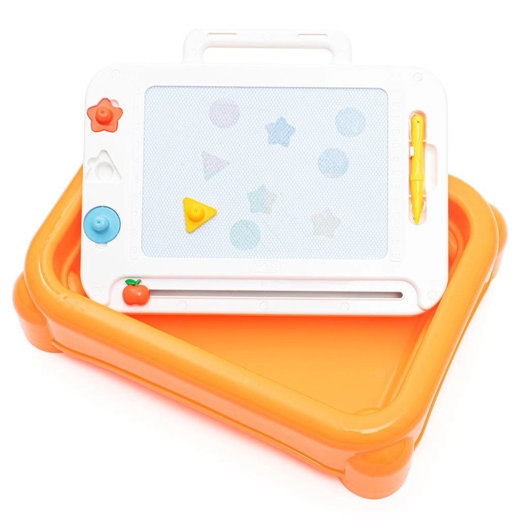 Večkrat rišite in brišite s pomočjo pisala in magnetnih žigov. Idealno za vajo prijema, koordinacije oko–roka in razvoj ustvarjalnosti.