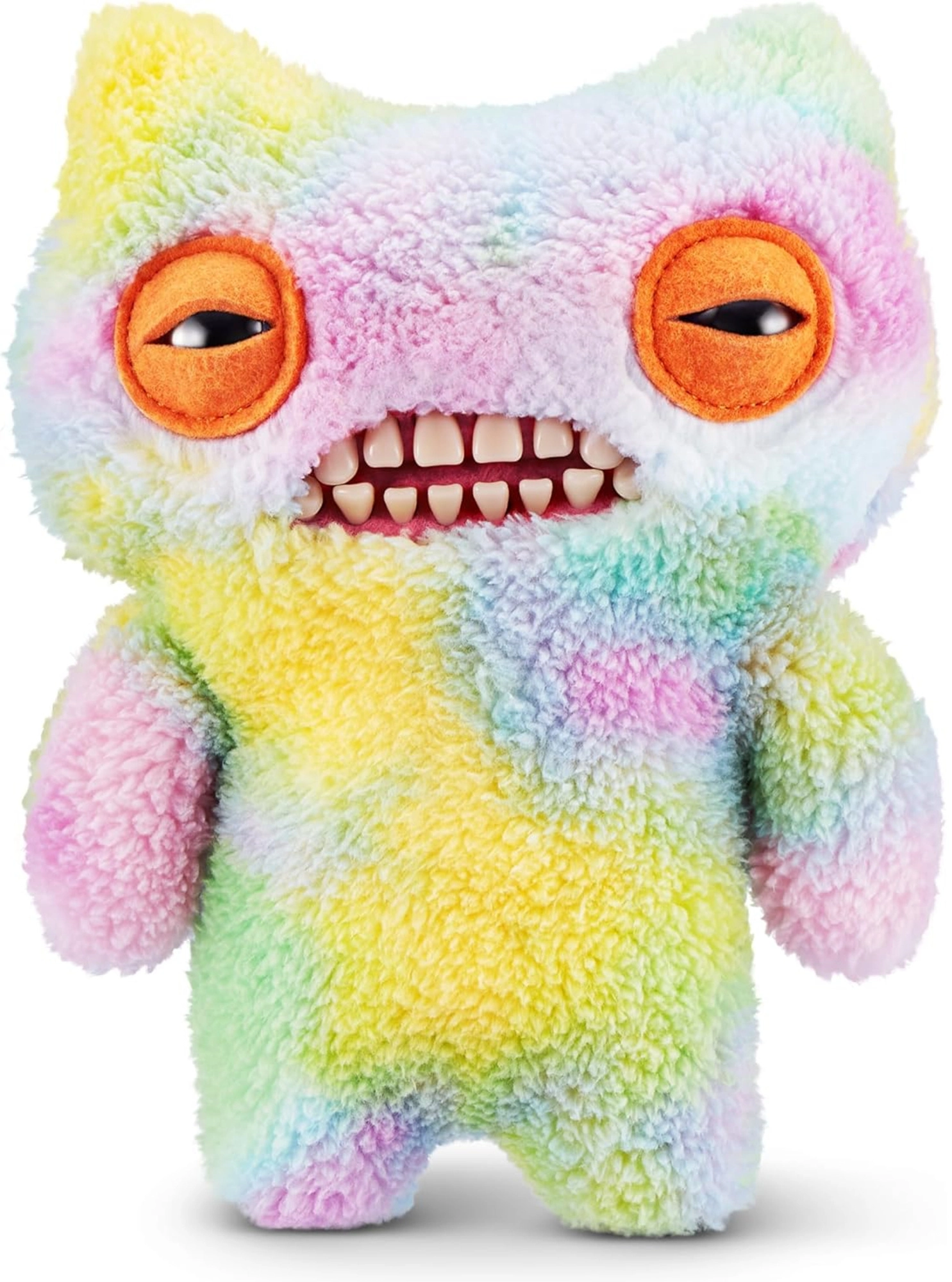 Plišasti FUGGLER Munch Munch iz serije Laboratory Misfits Monster je prava oblikovalska kurioziteta. Združuje pastelno mavrično sherpa krzno, izrazite veke in zobke, skrite v ustecih, zaradi česar deluje zabavno in edinstveno. Je lahek, prijeten na dotik in lepo sede v naročje.