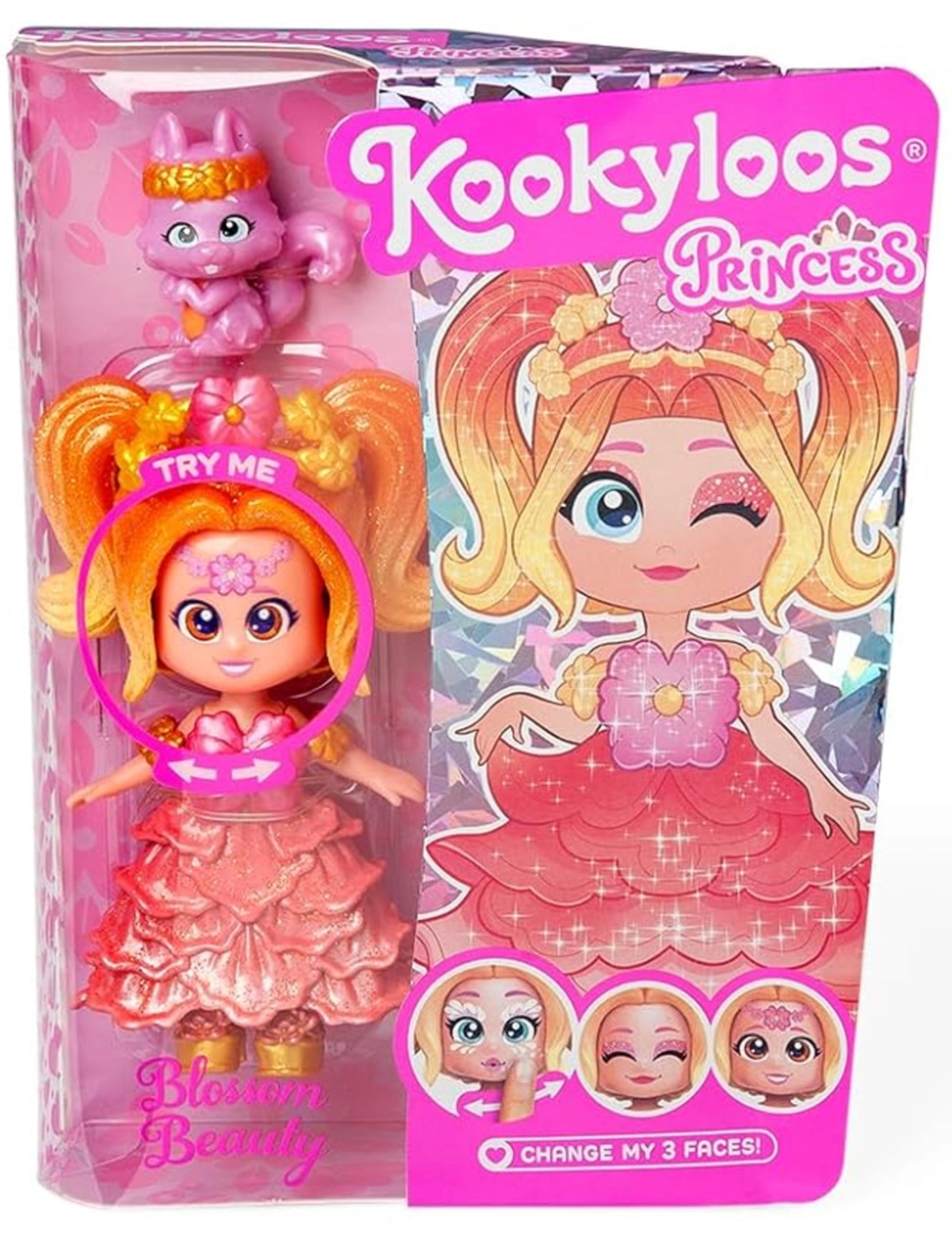 Odkrijte čarobni svet KookyLoos s figurico Blossom Beauty – prikupno princesko s cvetličnim slogom, bleščečimi pričeskami in zamenljivimi dodatki. Zahvaljujoč mehanizmu na en klik figurica prikaže 3 različne izraze obraza, ima gibljive sklepe in oblačila, ki so kompatibilna za mix & match stiliranje. Del seta je tudi njen zvesti ljubljenček – veverica za še bolj čarobne zgodbe.