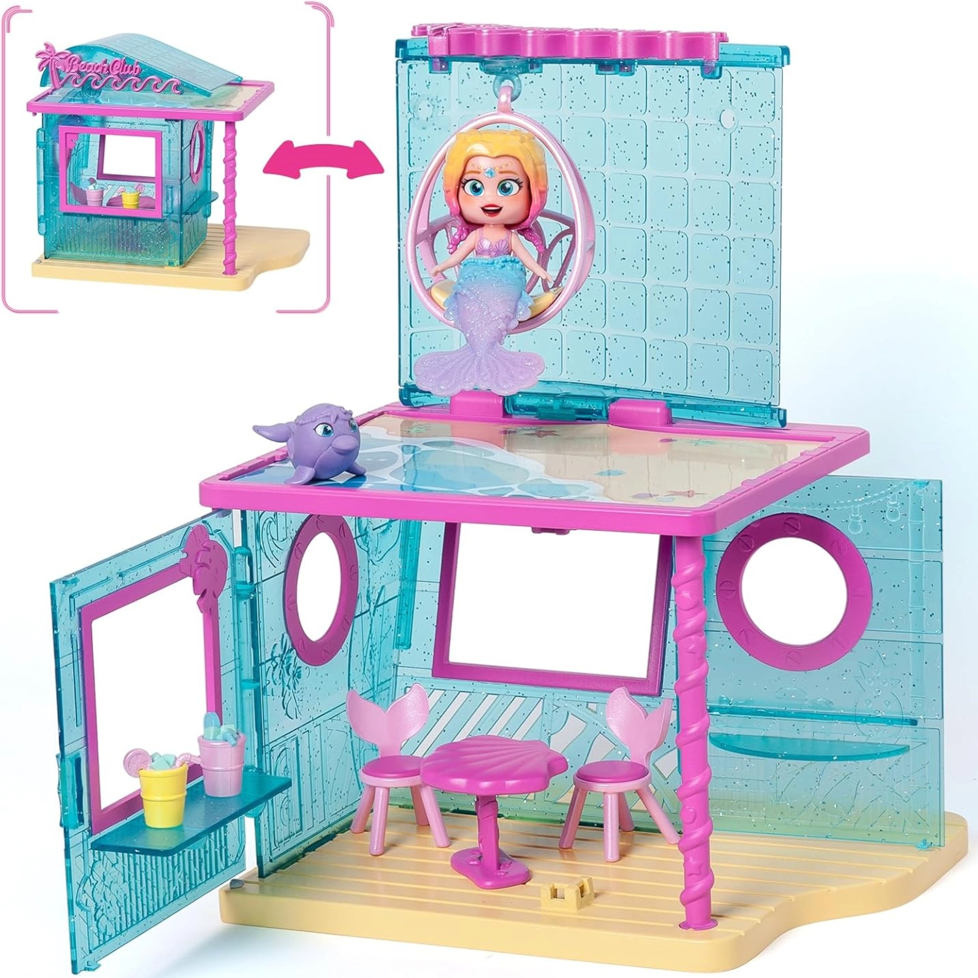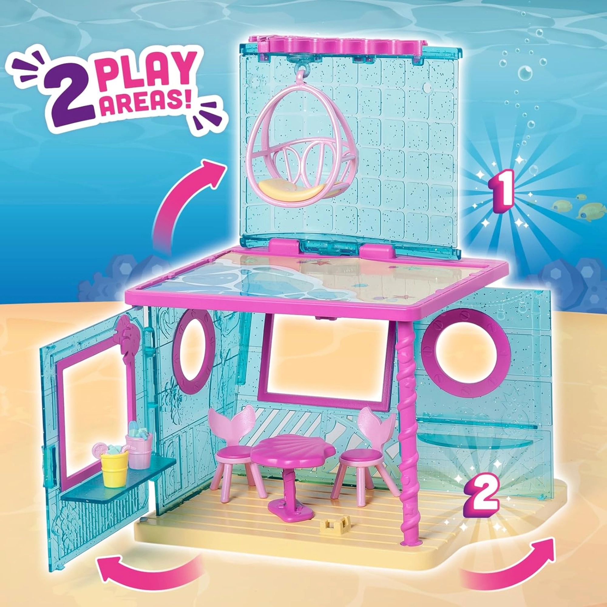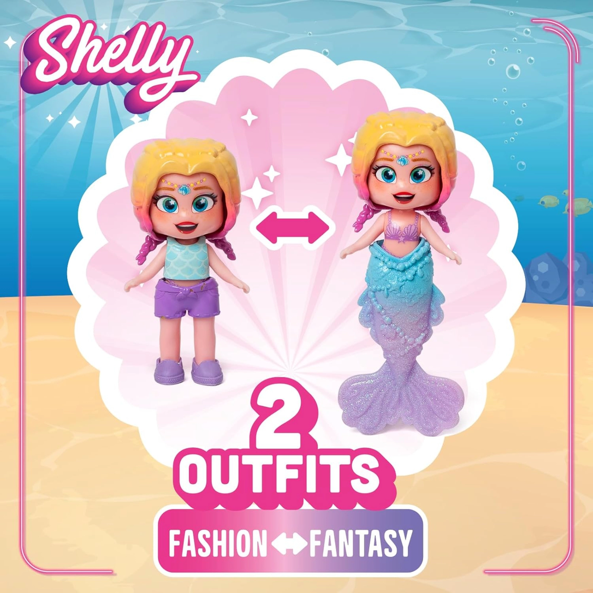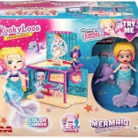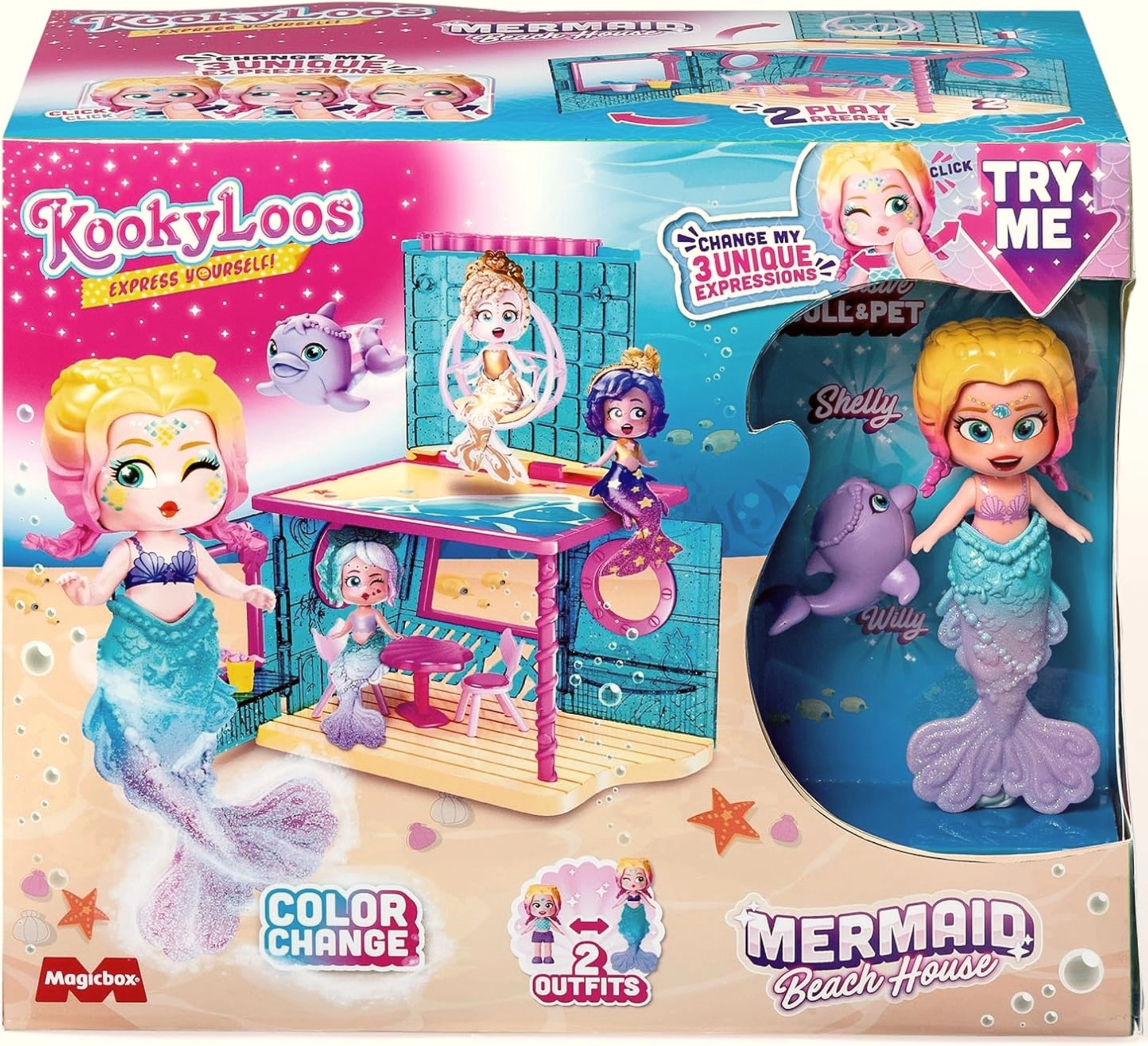 Vstopite v podvodni svet s KookyLoos MERMAID – prikupno morsko deklico Shelly, ki ima gibljive sklepe, 3 izraze obraza in očarljiv bleščeč rep. Odprite plažno hišico za morske deklice, jo okrasite po svojih željah in uživajte v neskončnih zgodbah z zvestim prijateljem – delfinčkom.