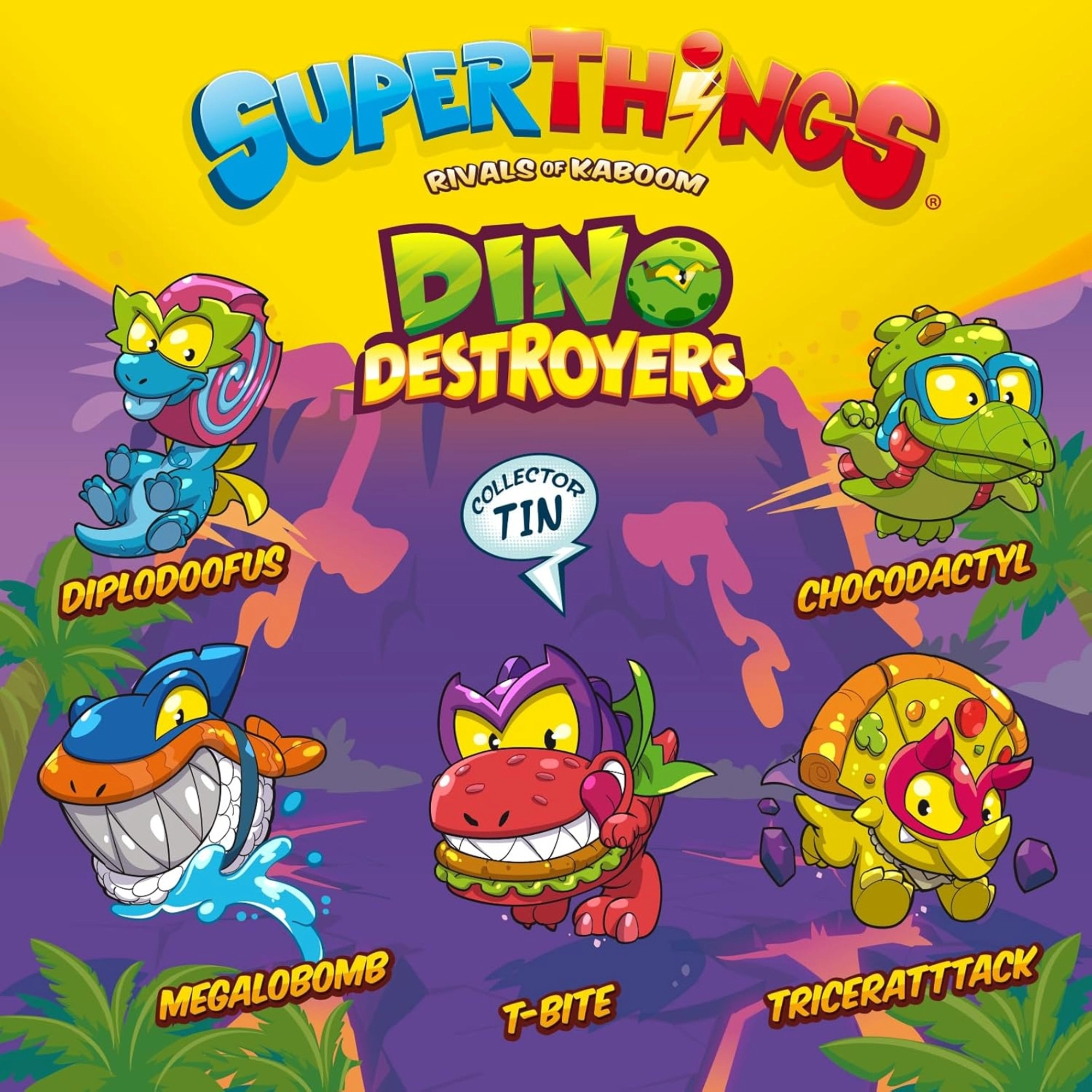 Odkrijte zbirateljsko senzacijo SuperThings Dino Destroyers v elegantni srebrni pločevinki. V notranjosti najdete 5 ekskluzivnih figuric, ki jih drugje ne boste našli, ter varno kovinsko pakiranje, idealno za shranjevanje kolekcije. Komplet združuje pradavninske dino motive s hrano ter prinaša zabavo, razstavljanje in zbirateljsko vrednost za oboževalce Kaboom Cityja.