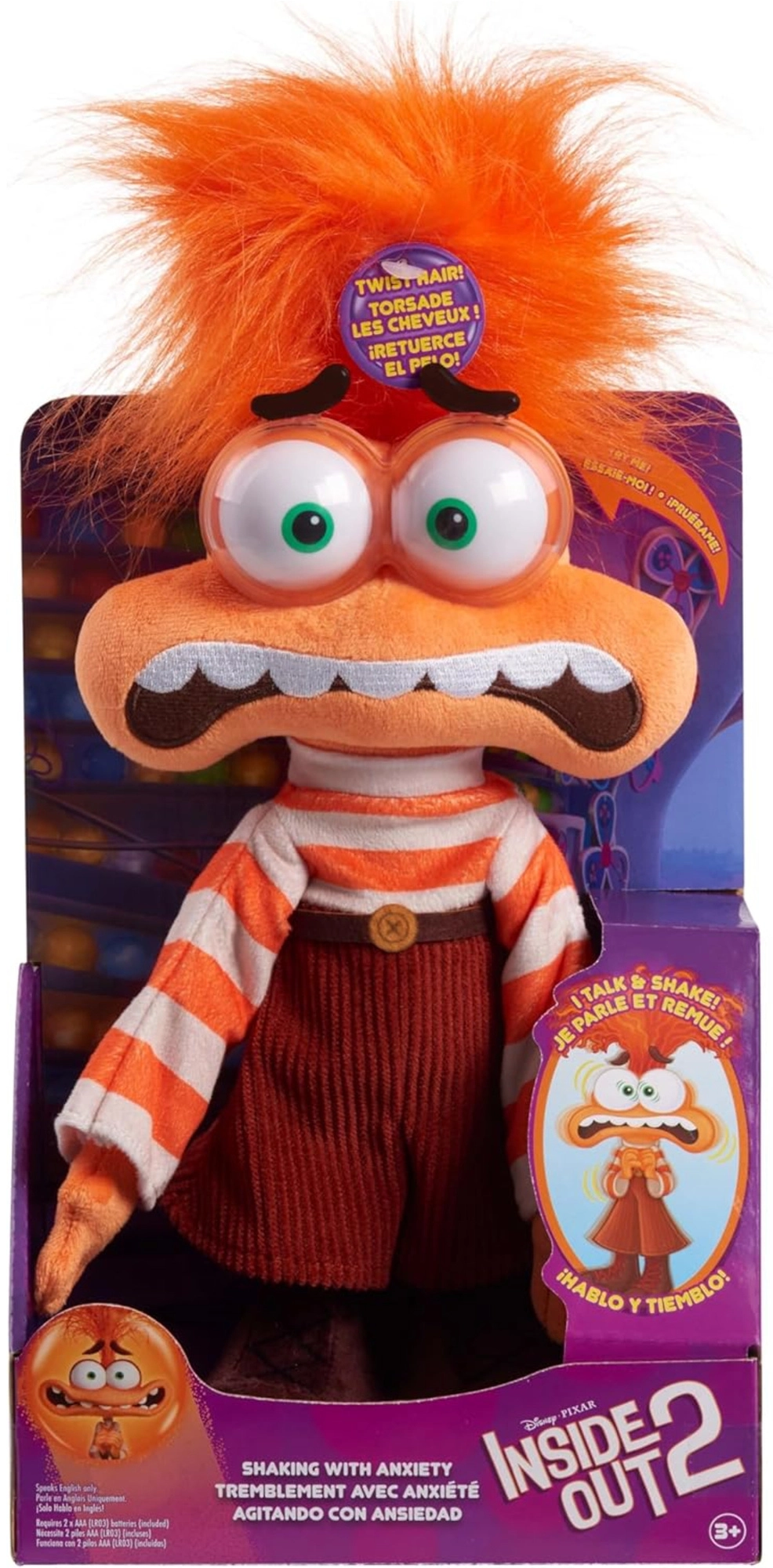 Interaktivni pliš Objava (Anxiety) izstopa z oranžnimi odtenki, izrazitimi očmi in razmršenimi lasmi. Visok je približno 32 cm, prijetno mehak in idealen za vsakodnevno igro ter uspavanje. Z zasukom glave se aktivira tresenje in zaigrajo priljubljene filmske fraze v angleščini – odlična kombinacija zabave in spodbude za razvoj domišljije.