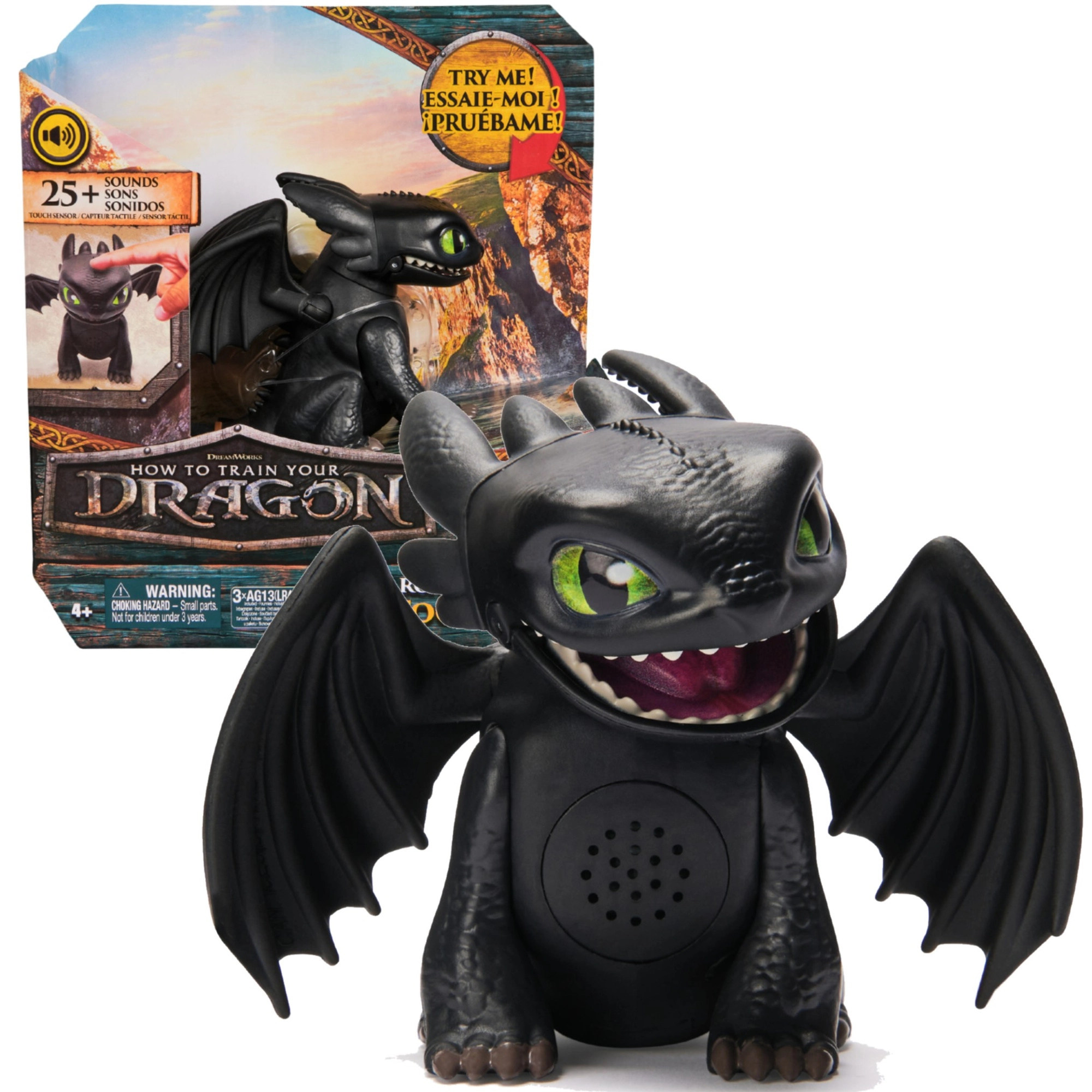 Dotik na glavi sproži pestro paleto efektov – od renčanja in rjovenja do značilnih zvokov iz sveta filma Kako izuriti zmaja.