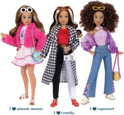 Punčka ima kodraste rjave lase, idealne za česanje in oblikovanje. V setu najdete 2 popolna videza, vključno s topi, jopo/puloverjem, kavbojkami, krilom, dvoji pari čevljev, torbicami in nakitom. Poudarek na detajlih z motivi iz pravljice Tangled (Navdih Rapunzel) ter z ikoničnimi elementi MICKEY doda setu izviren videz.
