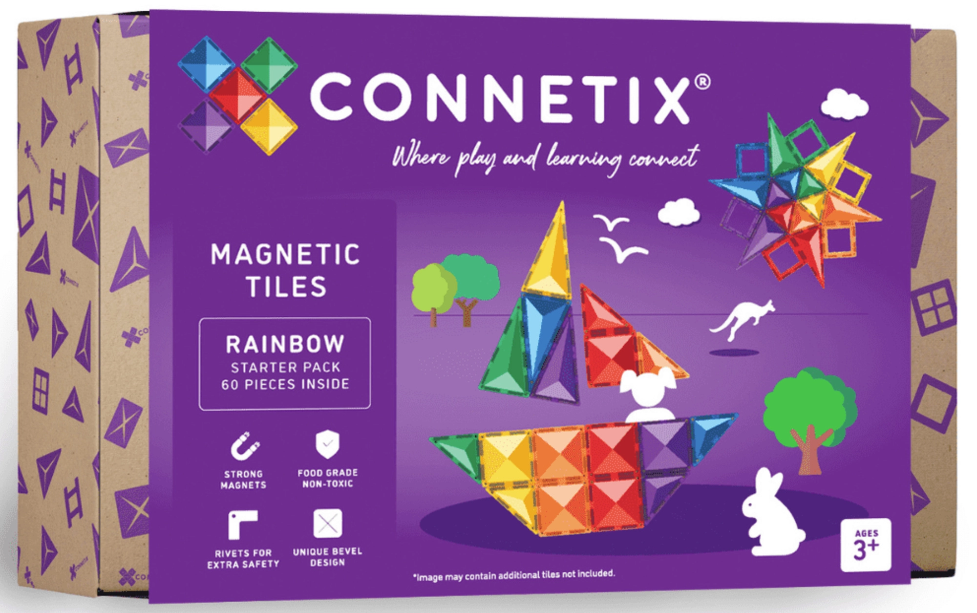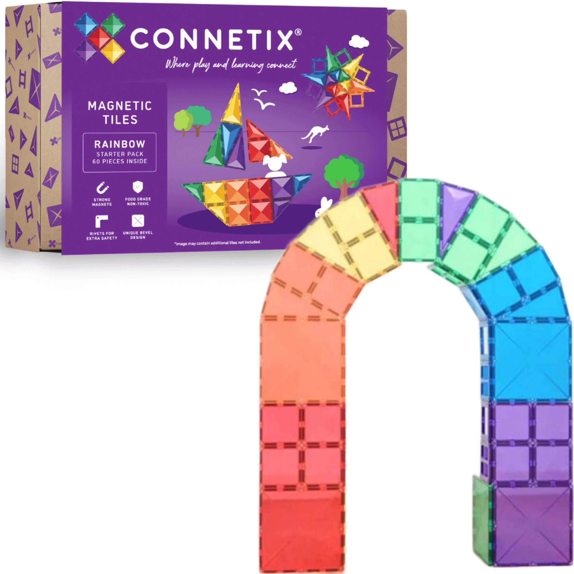 Začetni komplet CONNETIX Rainbow Starter Pack prinaša 60 kakovostnih, prosojnih magnetnih ploščic v intenzivnih barvah, z zaobljenimi robovi in zelo močnimi neodimskimi magneti za stabilne konstrukcije. Otroci bodo vzljubili značilni »klik« pri povezovanju, medtem ko naravno razvijajo matematiko, fiziko, tehniko in umetnost.