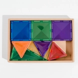 Ta začetni set s 24 kosi je odličen vstop v svet magnetnih sestavljank. Otroci zlahka zgradijo gradove, mostove in rakete ter ob tem naravno razvijajo znanstveno in tehnično razmišljanje, razumevanje magnetizma in geometrije v prostoru. Kristalno prozorne, barvne ploščice so odporne proti praskam in zahvaljujoč močnim magnetom konstrukcije trdno držijo skupaj.