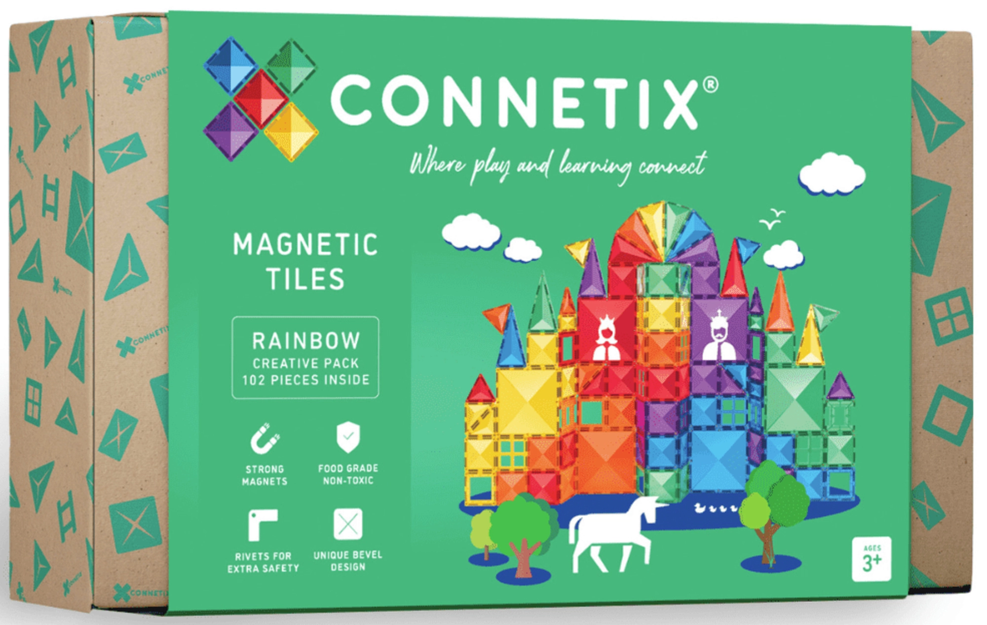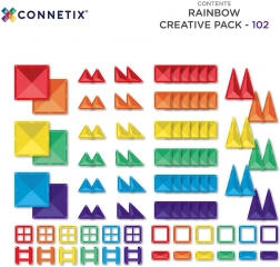 Sestavljanka CONNETIX Rainbow Creative Pack otrokom prinaša igrivo pot do odkrivanja geometrije, ravnotežja in načel magnetizma. Barvni prozorni delci v različnih oblikah se zahvaljujoč močnim magnetom »zaskočijo« z vseh strani in omogočajo gradnjo 2D in 3D modelov. Idealno za domačo igro, vrtce, Montessori in senzorično terapijo.