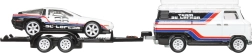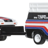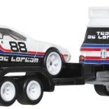Uživajte v vrhunski izdelavi in dirkaškem vzdušju s transportnim kompletom Team DeLorean. Bel vlačilec s prikolico prevaža športni avtomobil DMC DeLorean #78 v belo-črni kombinaciji z rdečimi in modrimi črtami. Set je pripravljen za takojšnje razstavljanje in igro – le vzemite ga iz škatle in se zapeljite na stezo.