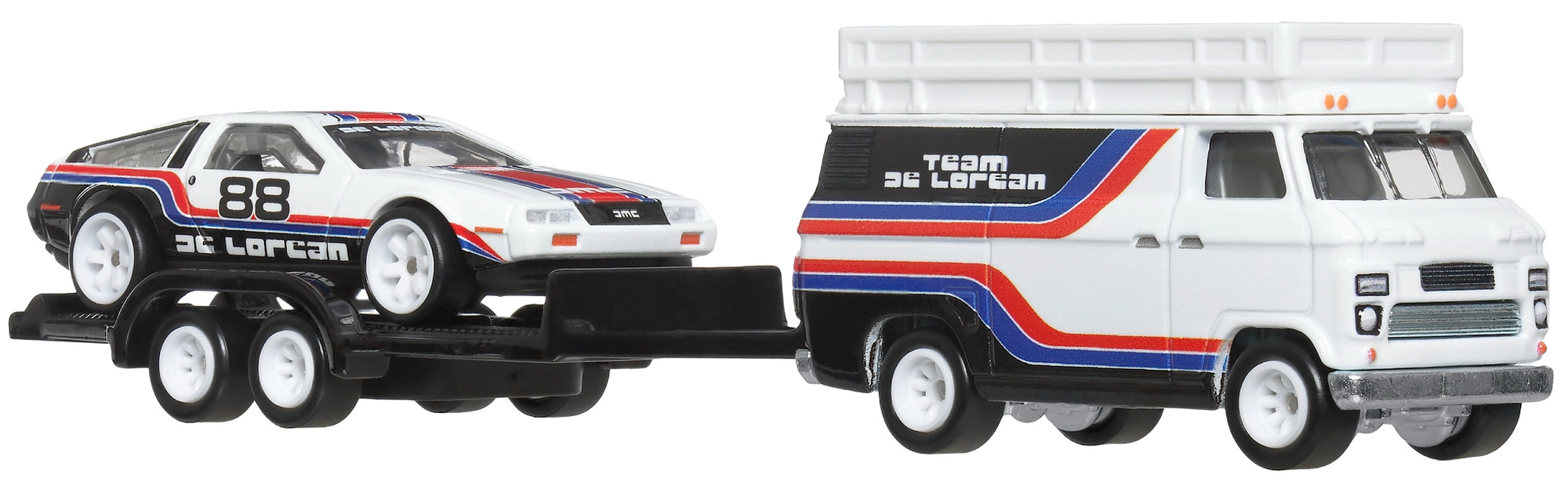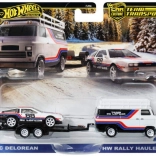 Ekskluzivni komplet iz serije Hot Wheels Premium Team Transport prinaša ikonični DMC DeLorean #78 na prikolici za stilskim rally haulerjem. Zahvaljujoč konstrukciji Metal/Metal, realističnim pnevmatikam Real Riders in podrobnim potiskom Team DeLorean je to popolna izbira za zbiratelje in otroke od 3 let dalje.