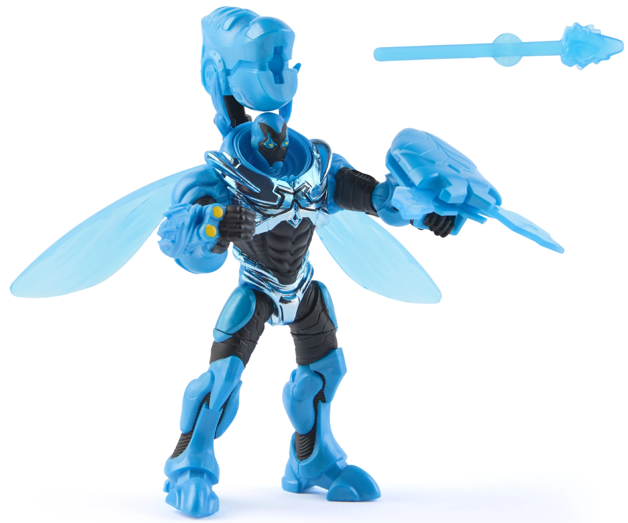 Prosojni ščiti, krila in orožje dodajo igri energijo ter verno odražajo opremo BLUE BEETLE.