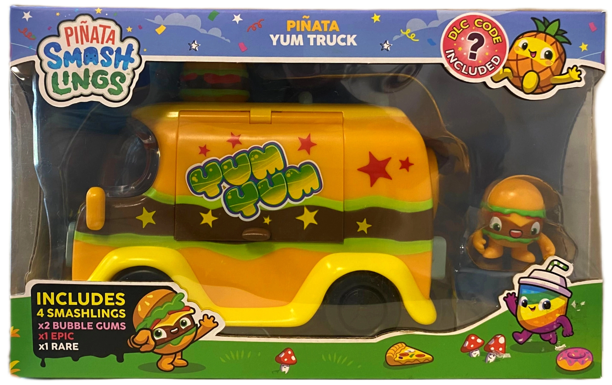 Vstopite v svet PINATA SMASHLINGS in zaženite sladko zabavo z barvitim Yum Truck food truckom, 4 figuricami in 3 dodatki. Uradni set znamke PMI povezuje zbirateljsko zabavo z digitalnim svetom zahvaljujoč DLC kodi. Odlično za otroke in zbiratelje, ki obožujejo presenečenja, žive barve in kreativno igro.