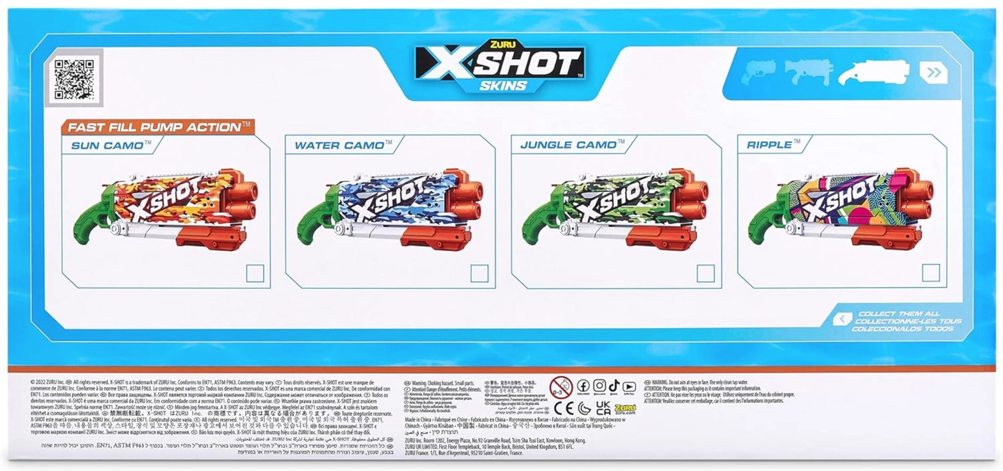 Vodna pištola ZURU X-SHOT Skins Fast-Fill Ripple dvigne vodne bitke na višjo raven. S tehnologijo Fast-Fill rezervoar dopolnite v samo eni sekundi – dovolj je odpreti, potopiti, zapreti in že ste spet v igri. Dolžina 49 cm zagotavlja odličen oprijem, stabilnost in zmogljivost za natančne zadetke.