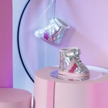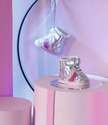 Čeveljčki z vezalkami in holografskim učinkom ter roza detajli so moda, ki je v modi za punčke.
