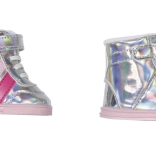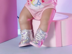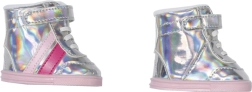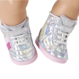 BABY born Holografski športni čevlji so idealen dodatek za vsako malo stilistko. Ti elegantni srebrni čevlji z roza črtami in ježki zagotavljajo enostavno obuvanje in so odličen modni dodatek za punčke.