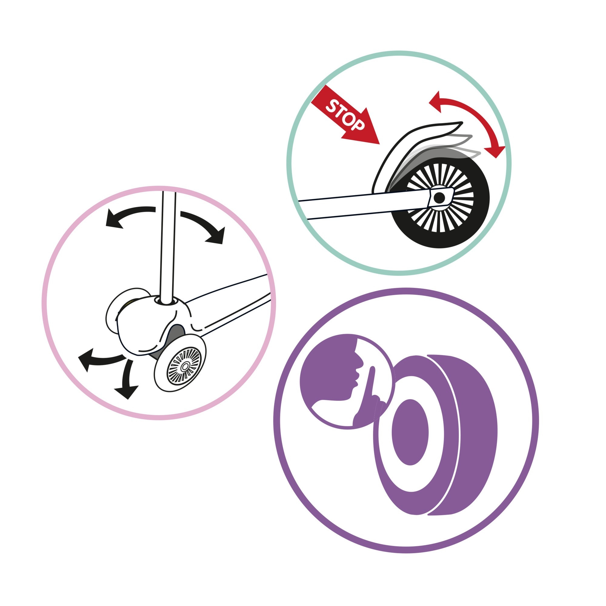 Skiro podpira razvoj ravnotežja in koordinacije z ravnotežnim (nagibnim) krmiljenjem. Tiha kolesca zagotavljajo udobno vožnjo tako na pločniku kot na igrišču. Kakovostna izdelava in trpežni materiali zagotavljajo dolgo življenjsko dobo tudi pri pogosti uporabi.