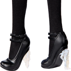 Dodelani dodatki, kot so srebrnat pas, uhani in salonarji s kristalnimi petami, poudarijo gotski slog in naredijo punčko za izrazit kos v vsaki zbirki. Zahvaljujoč zgibnim rokam in nogam zlahka zavzame različne poze – idealno za fotografiranje in razstavo.