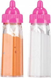 Spodbudite domišljijo in socialne veščine otrok z setom dveh stekleničk – ene za mleko in druge za sok. Zahvaljujoč praktičnim meram 10 × 3 × 3 cm se odlično prilegajo majhnim otroškim rokam in opremi za punčke. Igra s stekleničkami razvija igre vlog, nego in komunikacijo.