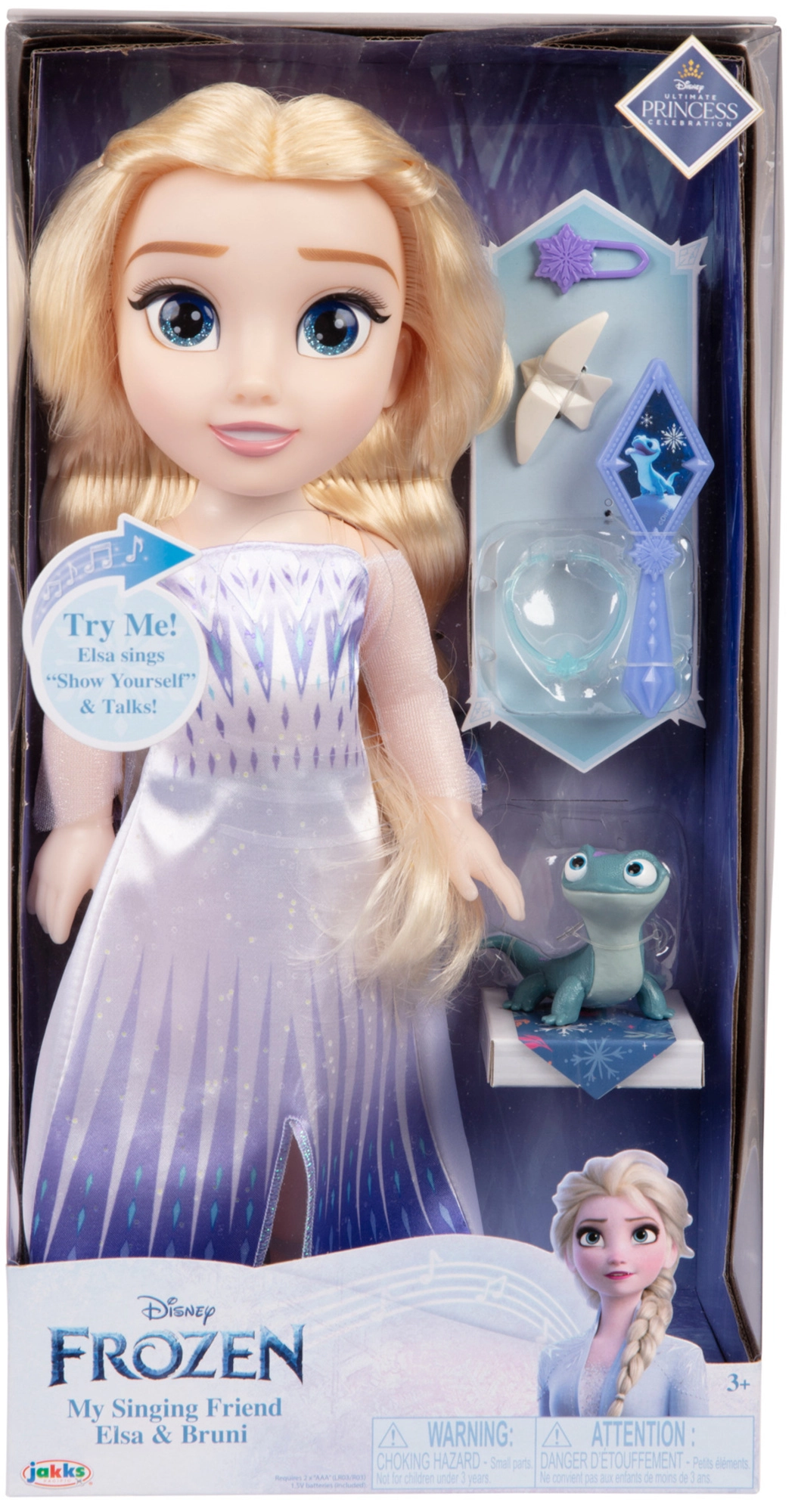 Punčka Elsa znamke Jakks Pacific prinaša otrokom priljubljeno junakinjo iz filma Frozen – Ledeno kraljestvo. Zahvaljujoč interaktivnemu gumbu na življenčku Elsa zapoje del pesmi »Show Yourself« ter spodbuja otroke k igri vlog, petju in ustvarjanju lastnih zgodb. Bleščeče oči in čudovita obleka iz drugega filma punčki dodajata čar in avtentičen videz.