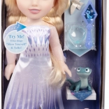 Odkrijte čarobnost s punčko Disney Princess Elsa, navdihnjeno s filmom Frozen – Ledeno kraljestvo. Poje del pesmi »Show Yourself« v več jezikih, meri pribl. 35 cm, ima bleščeče oči in dolge lase za česanje. Priloženi so figurica Bruni, krtača, ogrlica in 2 sponki. Odlično darilo za otroke od 3 let dalje.