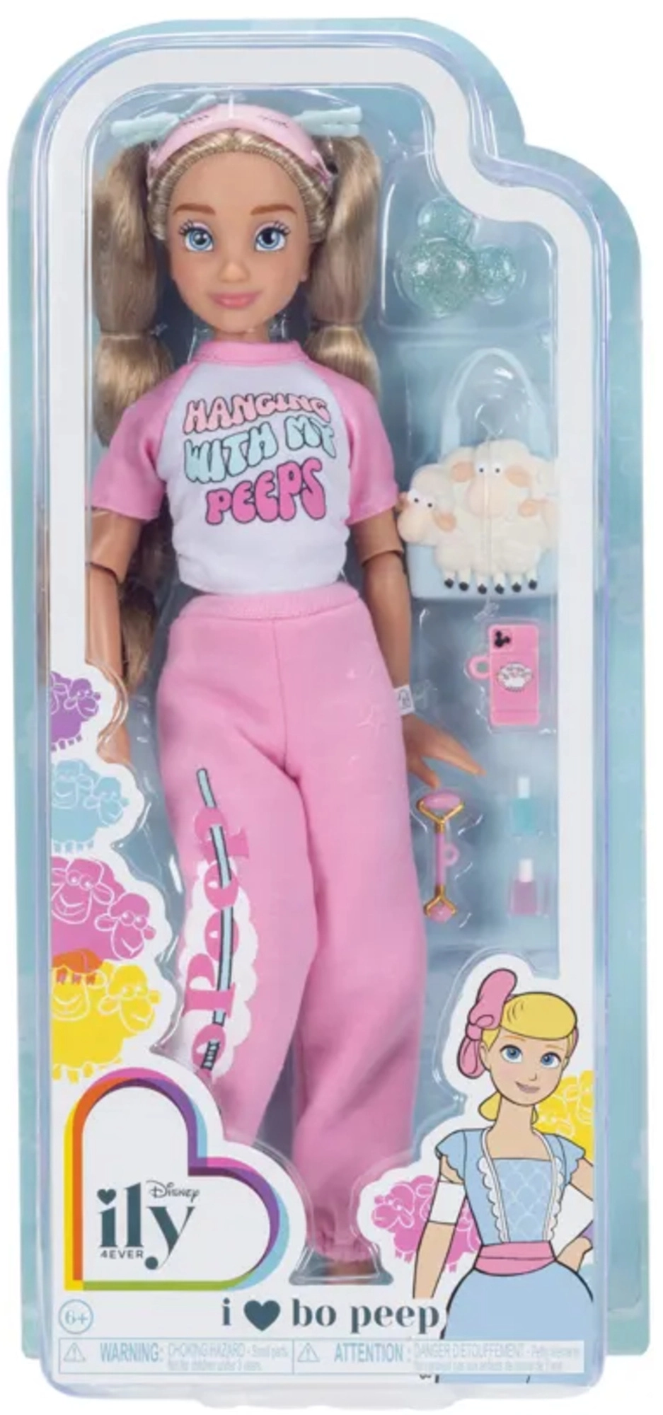 Stilska punčka Disney ILY 4Ever, navdihnjena z likom BO PEEP, prinaša sodobni loungewear videz, 13 gibljivih sklepov in več kot 10 tematskih dodatkov za neskončno ustvarjalno igro. Z dolgimi svetlimi kitkami, praktično torbico v obliki ovčke in setom za domači SPA je idealna za otroke, ki imajo radi modo, oblikovanje in domiselne zgodbe.
