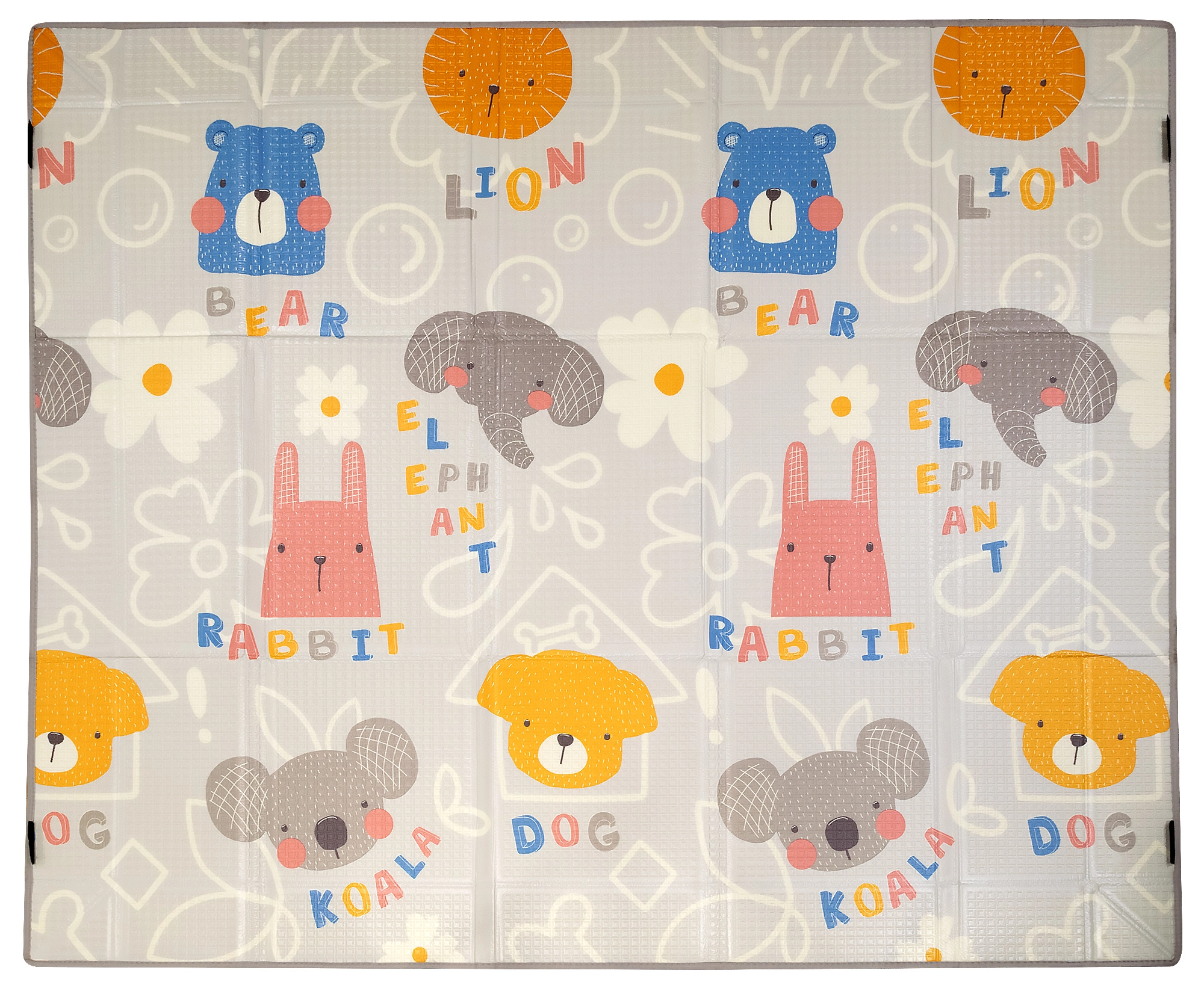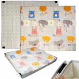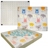 Velika in mehka penasta podloga iz XPE malčkom in dojenčkom nudi varnost in udobje pri igri, plazenju ter prvih korakih. Je dvostranska, zložljiva, vodoodporna in jo lahko s ježki preprosto spremenite v ograjen igralni prostor ali mini bazen za žogice. Odlično se poda v otroško sobo, dnevni prostor ali na vrt in je brez škodljivih snovi v skladu z normami EN71 in REACH.